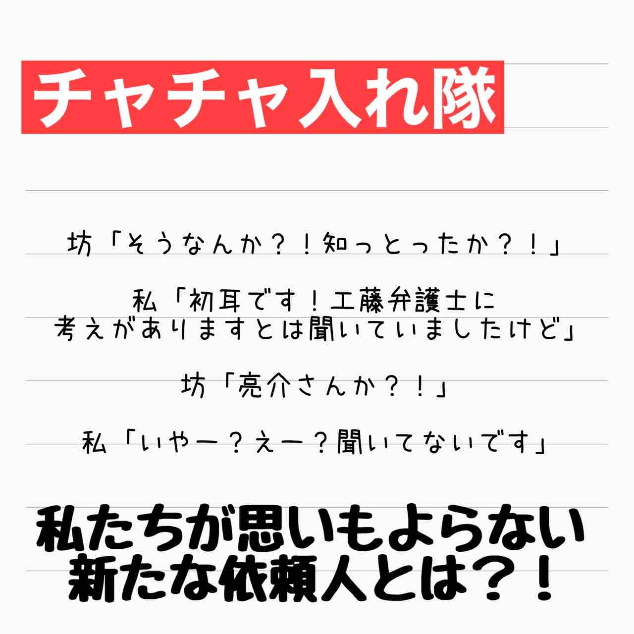 産後ホームレス 決着編 54 2021年07月16日 な、なんだってーーーーー?!工藤のウルトラC、発動やで!【あいか】もう一回おさらい。離婚の条件はこちら。 ↑LINEで更新通知が受け取れます。↑Twitter開設しました! 「産後10日でホームレスになった話」カテゴリの最新記事 タグ :#サレ妻#サレ妻あいか#ドラマ#離婚#実話#再婚 < 前の記事次の記事 > コメント コメント一覧 (47) 1. わか 2021年07月16日 12:42 えぇー⁉️まさかの雅彦母が出てくるとは…! 0 サレ妻@あいか がしました 25. サレ妻@あいか 2021年07月17日 01:26 >>1 コメントありがとうございます☺️ まさかまさかの、です💦 0 サレ妻@あいか がしました 2. ななし 2021年07月16日 12:43 雅彦ママー! 雅彦ママにはできるだけ被害が行かないようにと願っていたけど、まさか攻撃に回っているとは!強い!まさに攻撃は最大の防御! 0 サレ妻@あいか がしました 26. サレ妻@あいか 2021年07月17日 01:27 >>2 コメントありがとうございます☺️ ですね!流石に黙っていられません! 0 サレ妻@あいか がしました 3. まさかここで義母様!! 2021年07月16日 12:44 神展開きた!!! 伏線のはり方うまーーーーって思ったけど実話か たまに実話って小説よりすごい展開ある いや、この実話をこの構成にしてるの書き手さんか、すごい。 0 サレ妻@あいか がしました 27. サレ妻@あいか 2021年07月17日 01:28 >>3 コメントありがとうございます☺️ なるべく事実に沿うように、でも身バレを防ぎつつ読み物としてもらえるように苦心しているので、嬉しいお言葉ありがとうございます🙇♀️ 0 サレ妻@あいか がしました 49. しつこいようですが 2021年07月17日 15:41 >>27 面白いストーリがあっても構成がグダグダだとつまらなく感じたりするんですよね あいかさんの構成力すごいと思います。 結末まで楽しみにしています。 0 サレ妻@あいか がしました 4. みずたま。 2021年07月16日 12:50 ここで、まさかの雅彦母! スゴイやん!工藤!! 結婚の意思がないのに家を抵当に入れさせたなら、結婚詐欺案件ですね。 結婚詐欺で裁かれるのは雅彦ではなくミソノだったのかー🤣 0 サレ妻@あいか がしました 28. サレ妻@あいか 2021年07月17日 01:30 >>4 コメントありがとうございます☺️ 実家の抵当のあたりで気付いた工藤のウルトラCです✨ 0 サレ妻@あいか がしました 5. Ricca 2021年07月16日 12:51 最終的にミソノ家はどんだけの額を出すはめになるのやら・・・。 資産状況が分かりませんが最後には貧乏暮らしでもして苦労して欲しいですね。 それでも刑事事件になるよりは全然マシでしょう 0 サレ妻@あいか がしました 29. サレ妻@あいか 2021年07月17日 01:30 >>5 コメントありがとうございます☺️ むしろミソノ一家もおうちを抵当に入れてみては?って感じですよね。 目には目を、ですからね🤷♀️ 0 サレ妻@あいか がしました 6. 2児のママ 2021年07月16日 12:51 雅彦の母が出てくるとは! ミソノと再婚するのを条件に実家を抵当に入れたのに現在進行形で再婚してないから不審に思って攻撃に回った訳ですね! ミソノ一家まだまだ逃げられないぞ! 0 サレ妻@あいか がしました 30. サレ妻@あいか 2021年07月17日 01:31 >>6 コメントありがとうございます☺️ 雅彦母もある程度今回の事情を知っているので、再婚なんてとんでもないとは思いつつご協力下さってます✨ 0 サレ妻@あいか がしました 7. りんご 2021年07月16日 12:52 おぉぉぉ😍!!! 雅彦ママ💕💕💕!!! そりゃそうですよね!! 被害者ですもんね! 訴える権利あるある😏✨!! 雅彦は知らなかったんですよね?? びっくり展開ですね😍✨ さあ、ミソノ一家はなんて吠えるのか🙈✨ 0 サレ妻@あいか がしました 31. サレ妻@あいか 2021年07月17日 01:32 >>7 コメントありがとうございます☺️ 雅彦はこの時は知ってます! 0 サレ妻@あいか がしました 8. ひろみ 2021年07月16日 12:59 雅彦母〜 おもわずニヤッとしてしまった。 そりゃそうよね、雅彦は実家まで抵当に入れて借金を繰り返してその金でミソノ母子は遊んでくらしてたんだもんね。 返済と慰謝料払わないとね。 0 サレ妻@あいか がしました 32. サレ妻@あいか 2021年07月17日 01:33 >>8 コメントありがとうございます☺️ そうなんですよ…。。。 雅彦母は知らなかったんでしょうね…。。。 0 サレ妻@あいか がしました 9. あな 2021年07月16日 13:03 だけどこれ雅彦がしょうこさんと結婚したのもあって雅彦側から破綻させてないかこれ? あと雅彦母はやっぱり雅彦甘やかしすぎですよ。 そもそも抵当許しちゃダメよ… 0 サレ妻@あいか がしました 33. サレ妻@あいか 2021年07月17日 01:34 >>9 コメントありがとうございます☺️ その辺りの疑問はごもっともです。のちにちゃんと説明されますのでしばしお待ちくださいませ🙇♀️ 雅彦母が雅彦を甘やかしすぎなのは、私も同意です😅 雅彦がああなってしまっているのも、やはり雅彦母にも原因あると思うんですよね…。。。 0 サレ妻@あいか がしました 10. ななし 2021年07月16日 13:25 これで雅彦ママへのお金も払った後、 誘拐について示談金請求って流れです