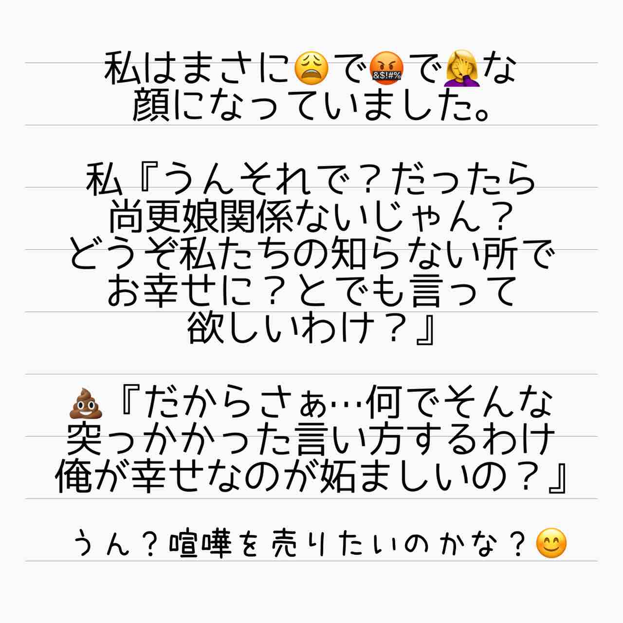 重婚していた元夫が海外で○○された話 4 2021年08月02日 相変わらず話が通じない💩。そして再婚していやがりました。次回、いよいよ何が起こったのかが明らかに!元💩夫のドケチエピソードはこちらから。 ↑LINEで更新通知が受け取れます。↑Twitter開設しました! 「海外赴任中の夫が現地女性と重婚していた話」カテゴリの最新記事 タグ :#実話#ドラマ#サレ妻あいか#サレ妻#離婚#モラハラ < 前の記事次の記事 > コメント コメント一覧 (10) 1. リサ 2021年08月02日 13:49 再婚したから養育費払えないとか言うんじゃないですよね?もしそうなら許しませんよ?( ^ω^) 0 サレ妻@あいか がしました 2. ゆり 2021年08月02日 13:53 >>1 養育費は一括で支払ってもらえたんじゃなかったですかね?違ったらすみません💦 0 サレ妻@あいか がしました 6. サレ妻あいか 2021年08月03日 02:41 >>2 コメントありがとうございます😊仰る通りです! やっぱり一括は強い! 0 サレ妻@あいか がしました 5. サレ妻あいか 2021年08月03日 02:40 >>1 コメントありがとうございます😊 一括で頂いているのでそこは安心してます🤣 0 サレ妻@あいか がしました 3. E.A 2021年08月02日 18:20 元旦那さんしつこいですね。 もう直接話理由ありません。 弁護士通して話したらいいと思います。 0 サレ妻@あいか がしました 7. サレ妻あいか 2021年08月03日 02:42 >>3 コメントありがとうございます😊 全くその通りなんですよ😭 でもこの後、そうもいっていられない事態に😭 0 サレ妻@あいか がしました 4. T 2021年08月02日 22:59 だからじゃねーよ! どうしても大事な用で緊急なら何としても伝えるために手紙でも何でも寄越すだろ。 自己都合オンリーですね😇 ていうか念願の海外で生活してるんだ🤣笑 どうかひっそり幸せに暮らしてくれ 関わらないで居てくれたらどんだけ幸せに暮らしててもいいからって感じですね😂 0 サレ妻@あいか がしました 8. サレ妻あいか 2021年08月03日 02:43 >>4 コメントありがとうございます😊 個人的には日本にいて欲しくないので海外にいるのはいいんですけど、とにかく私たちの前から消えてくれと…。 奴が言うには、離婚しても娘の父親である以上俺は離れないと。気持ち悪すぎです…。 0 サレ妻@あいか がしました 9. あkネ 2021年08月03日 06:55 なんでこの人こんなに上から何ですか?😳 電話出てもらえるだけありがたいと思えよ! 0 サレ妻@あいか がしました 10. サレ妻あいか 2021年08月03日 08:30 >>9 コメントありがとうございます😊 ですよね😭 まぁえらそうなのは今に始まったことではないですからね🤣 0 サレ妻@あいか がしました コメントフォーム 名前 コメント 記事の評価 リセット リセット 顔 星 情報を記憶 コメントを投稿する
