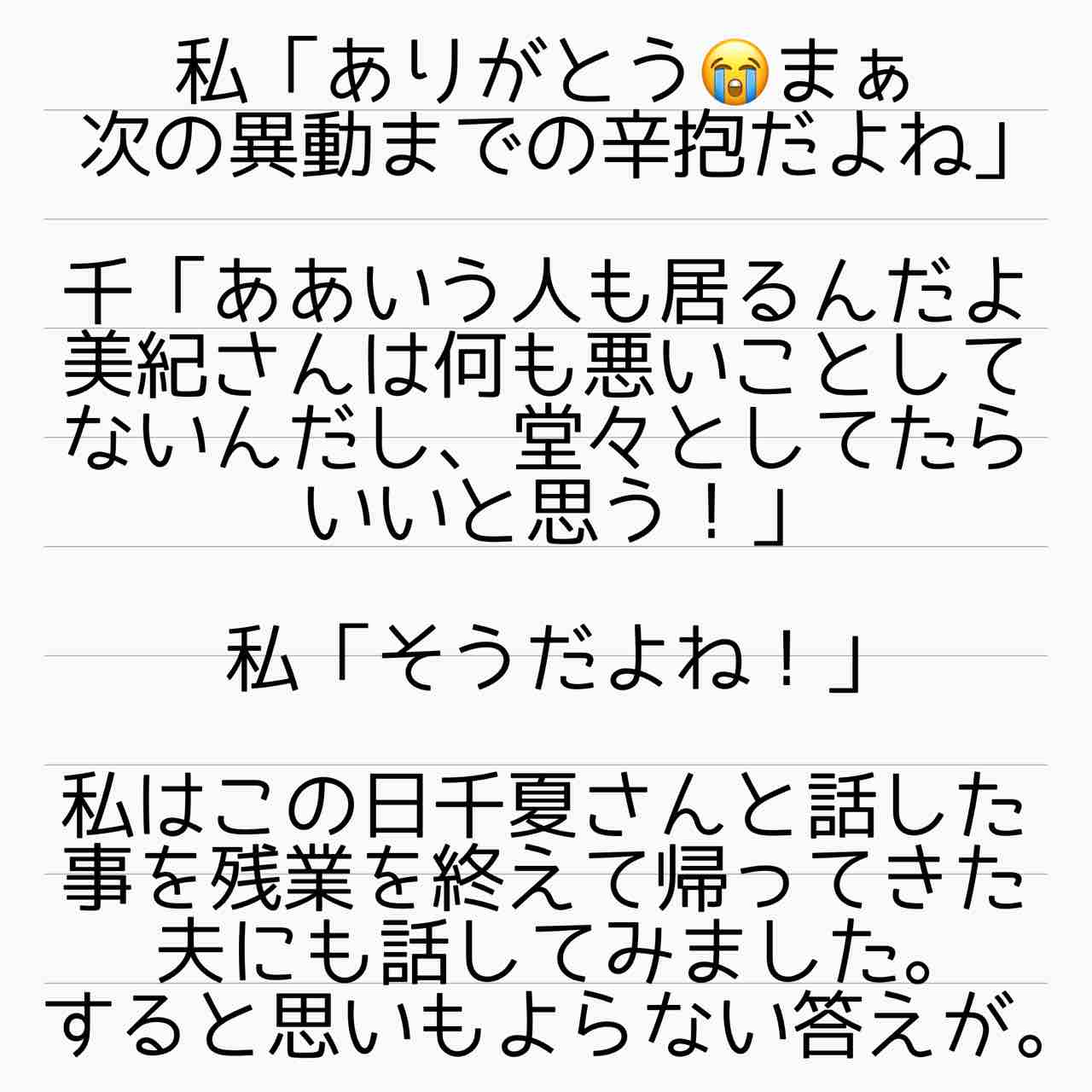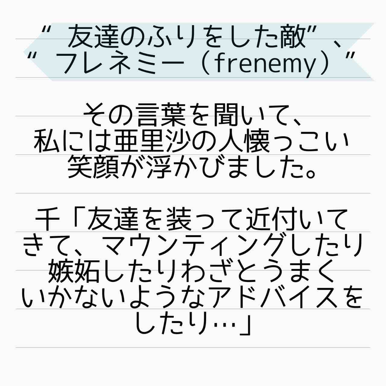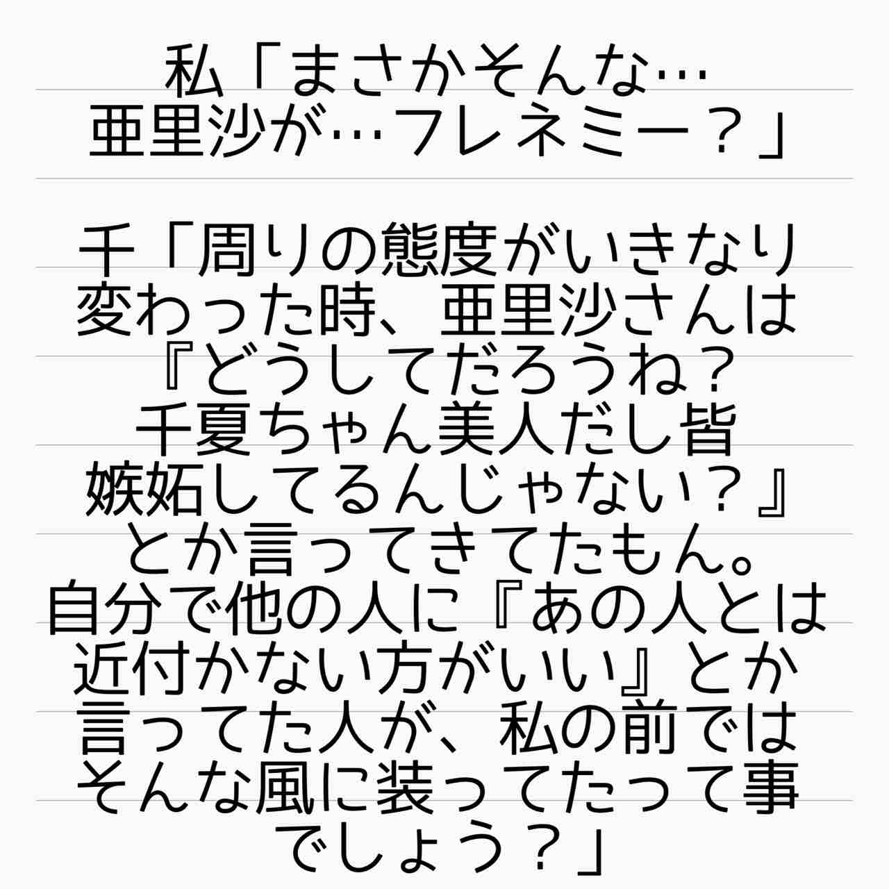 ママ友はフレネミー、そして夫の不倫相手 22 2021年08月21日 いよいよ亜里沙の本性が明らかになってきた?!果たして亜里沙はフレネミーなのか?管理人あいかのサレ妻ストーリーはこちらから(完結済)【海外赴任中の夫が現地女性と重婚していた話】 サレ妻しょう子さんのストーリーはこちらから(完結済)【産後10日でホームレスになった話】 サレ妻かおりさんのストーリーはこちらから(完結済)【セレブ妻かおりが全てを失いかけた話】 ↑LINEで更新通知が受け取れます。↑Twitter開設しました! 「ママ友はフレネミー、そして夫の不倫相手」カテゴリの最新記事 タグ :#不倫#浮気#離婚#サレ妻あいか#サレ妻#フレネミー#ママ友トラブル < 前の記事次の記事 > コメント コメントフォーム 名前 コメント 記事の評価 リセット リセット 顔 星 情報を記憶 コメントを投稿する