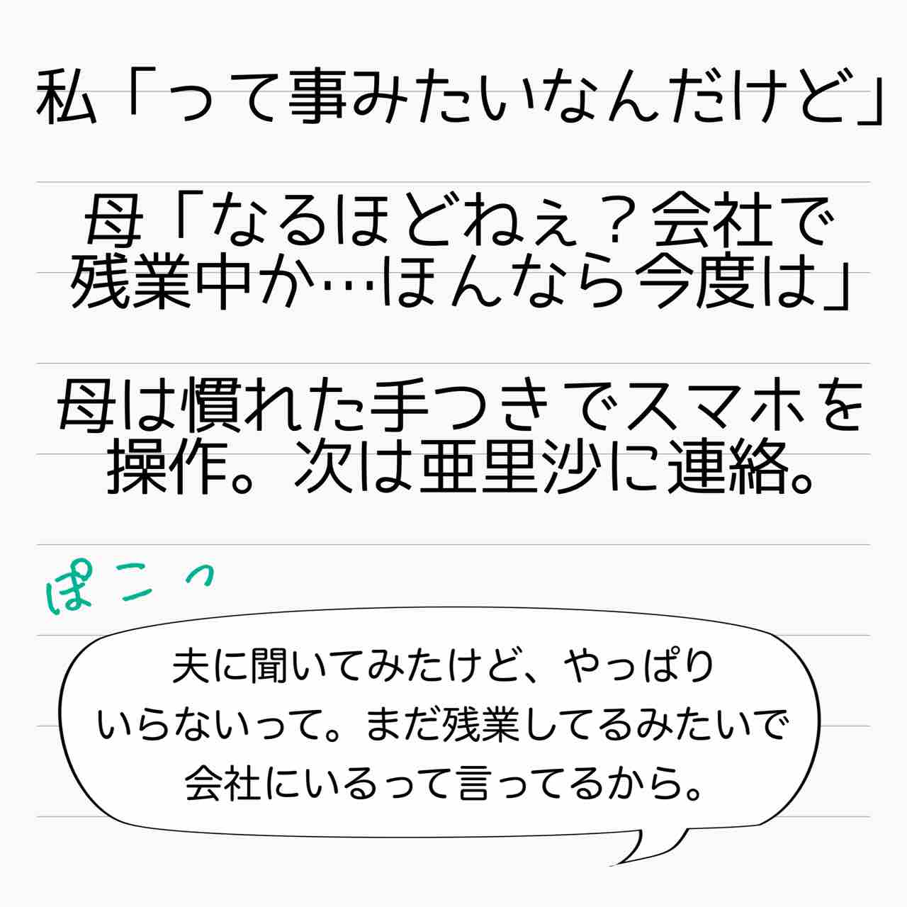 (相手が亜里沙か千夏かまだわかりませんが、どちらの場合も幼稚園へ通う子供がいるのに、一体いつ不倫する暇があるのか実は不思議に思っています……)