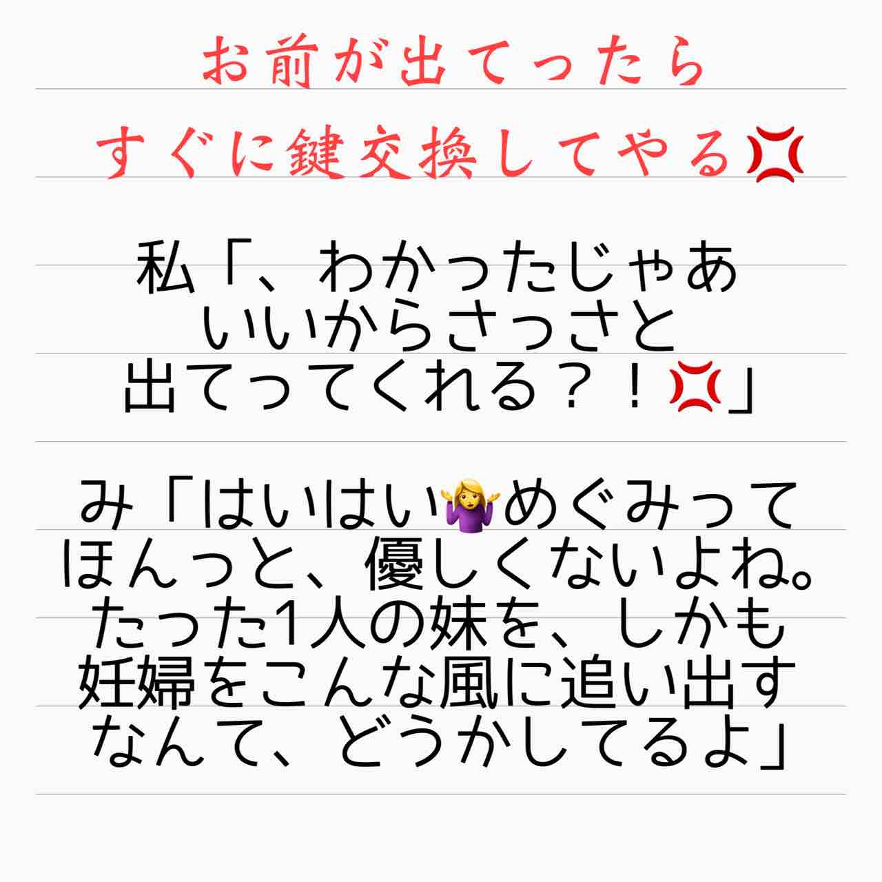 私だったら髪の毛鷲掴みにしてでも鍵を取り上げて部屋から追い出すわ💢😡💢