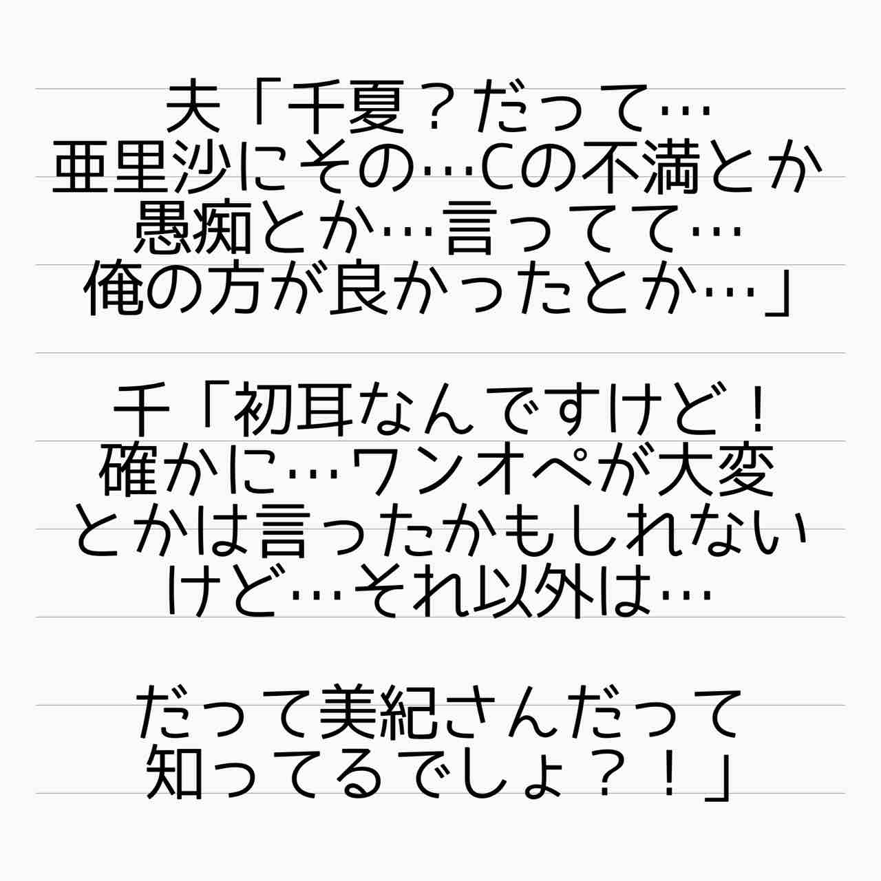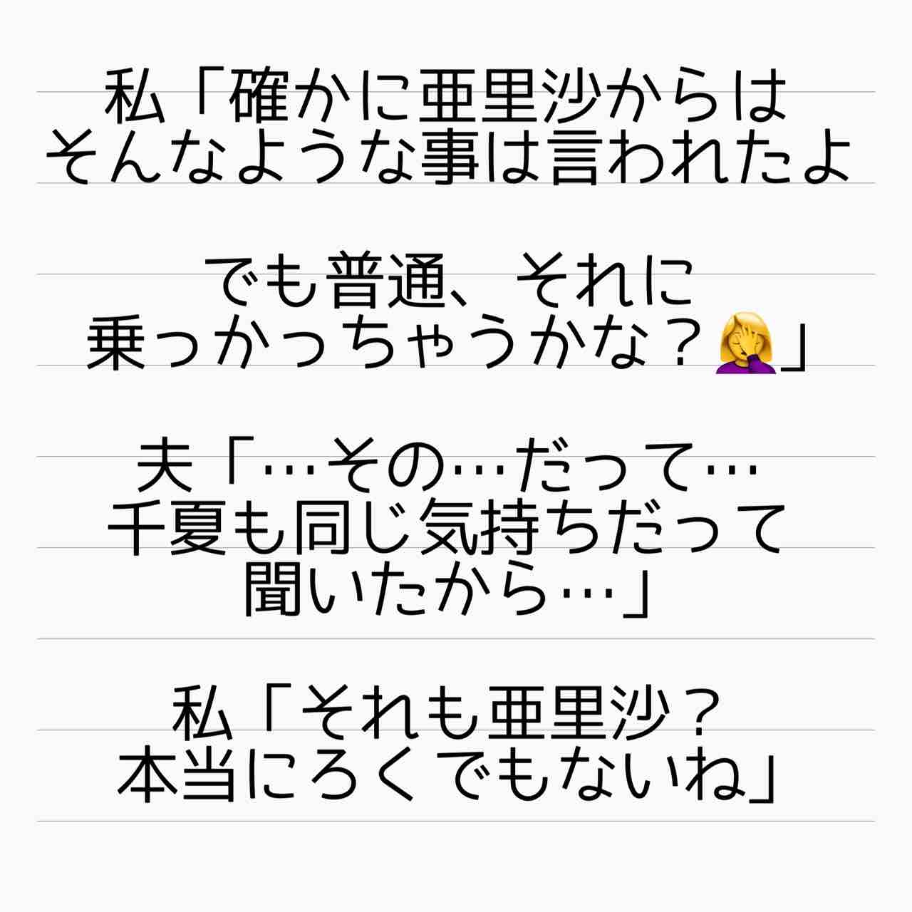 まぁ、話に乗っかる夫も千夏もどうかと思うけど🤷♀️