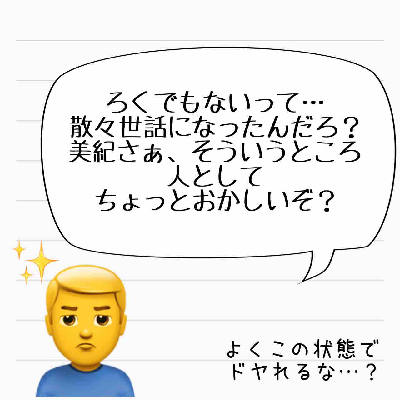 この場合、ここに呼んでも『みんな寄ってたかって』と吹聴されかねないので、個別に対応または法のプロに相談か、頼りになる美紀パパの意見をききたい所ですね。