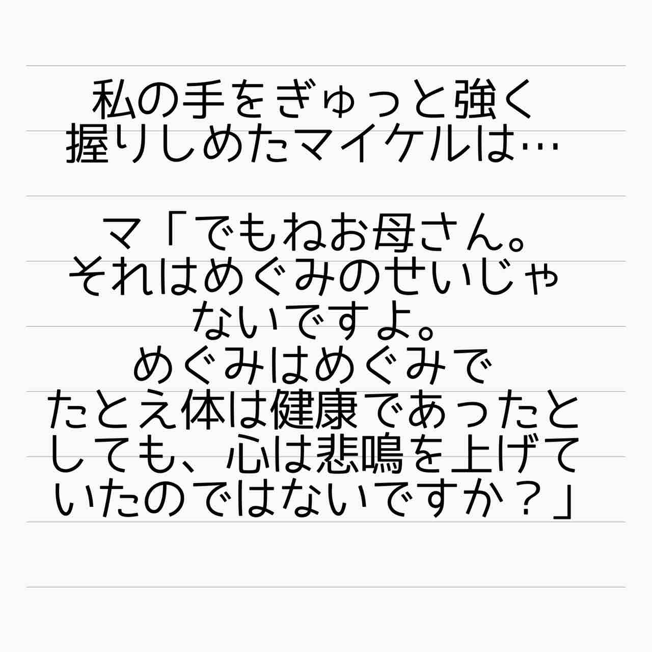 でも、マイケルがいなかったらめぐみさんはまた圧に屈してたんだろうな…。