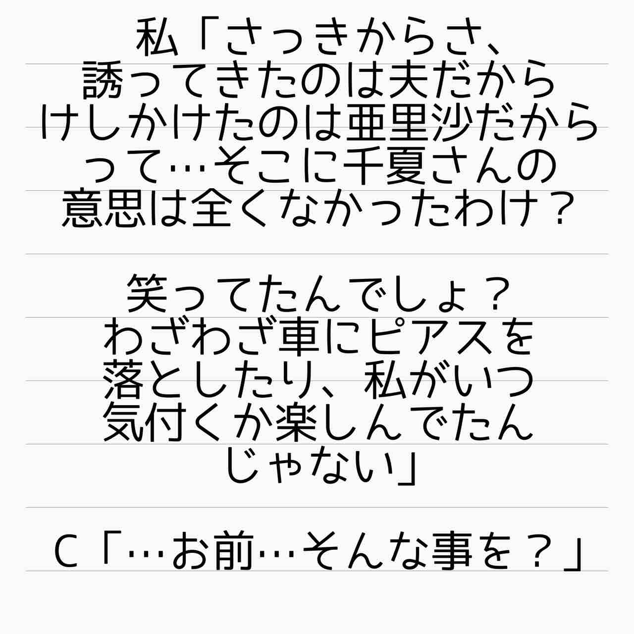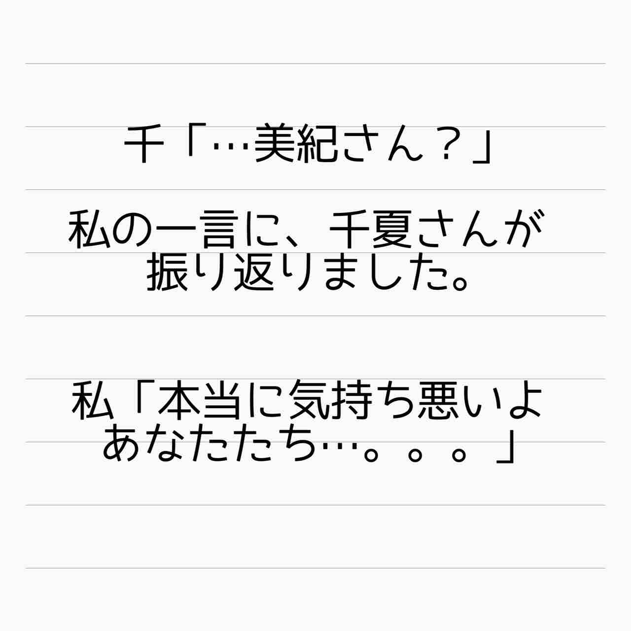 気持ち悪いって言ったのは、千夏じゃなく美紀さんだった! ごめんなさい失礼いたしました🙇♀️