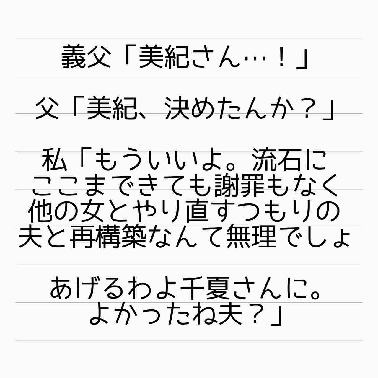 読んでるだけの自分が辛くなってきたのですから、離婚を言い渡した美紀さんはもっと胸が張り裂ける思いだったはず…