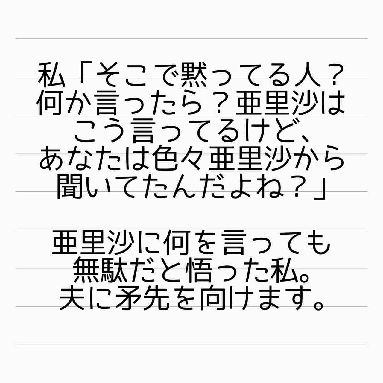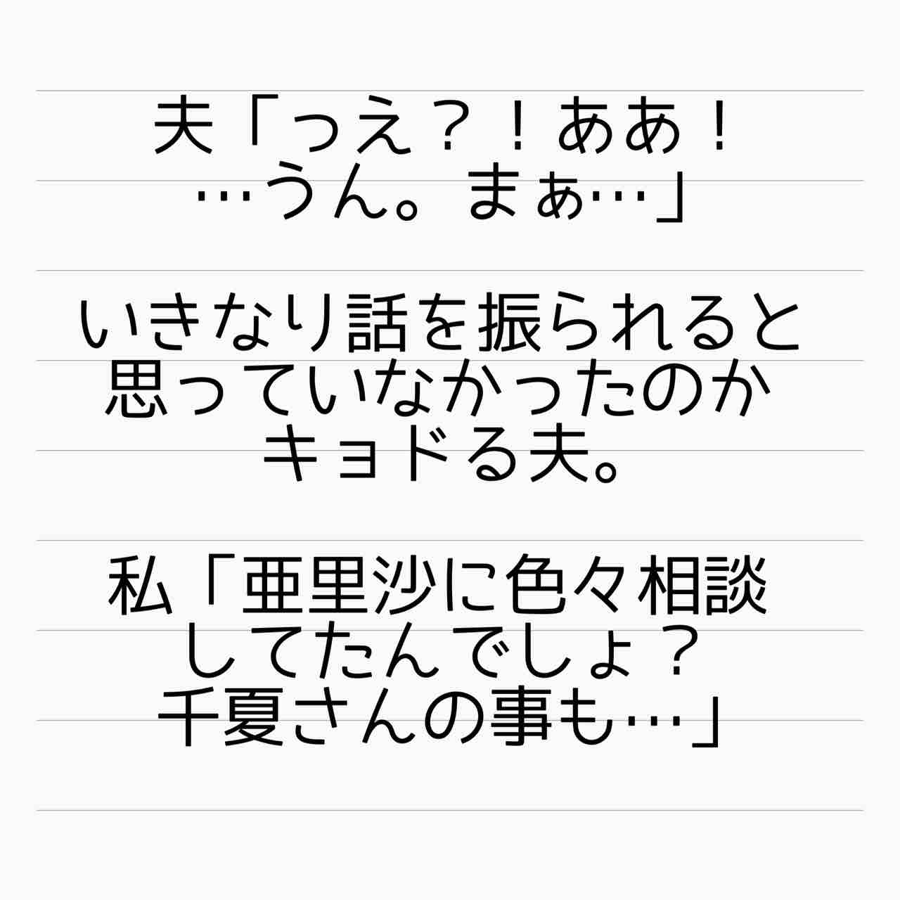 千夏の愚痴は☆ママからの拾い話で、亜里沙はそれを💩に話して焚きつけた??だったら「💩には相談してない」ってのは本当なんだろうけどさ〜…
