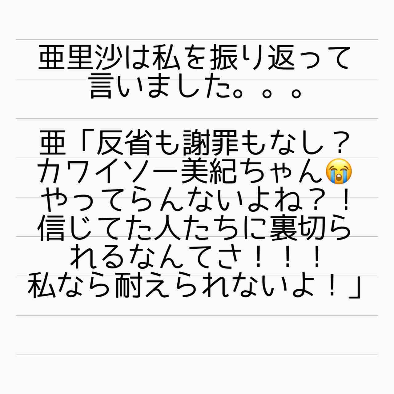 やっぱり亜梨沙はただの噂好きのおせっかいな下世話フレネミーなのかな
