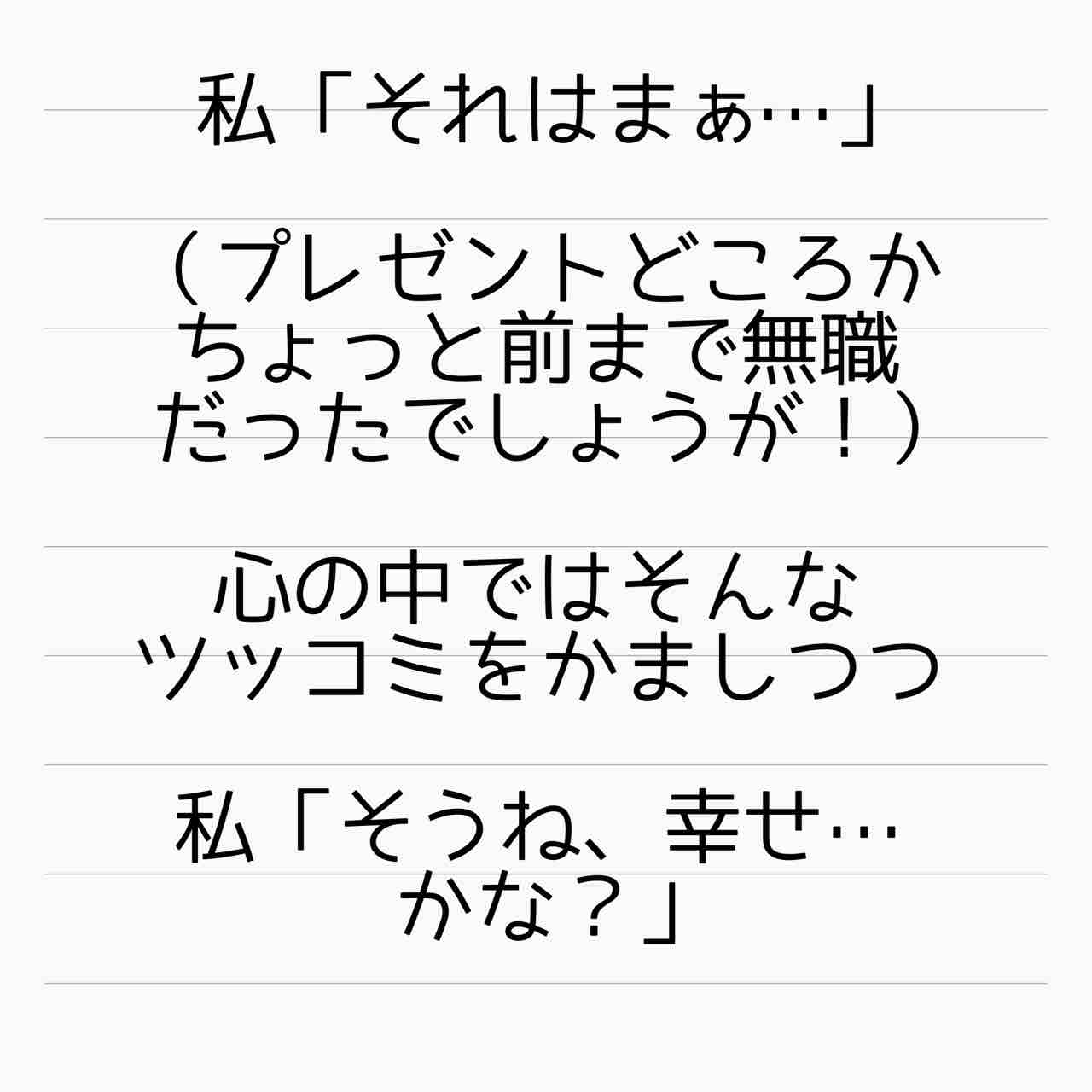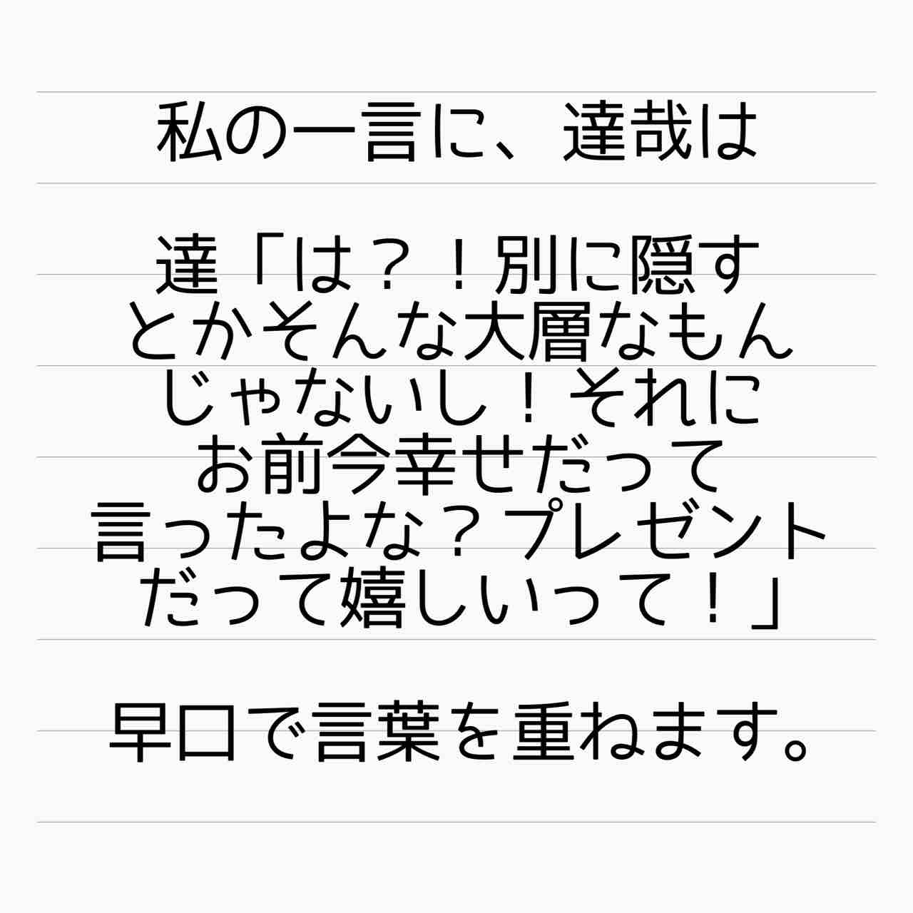 結婚相手は地雷男 11 2022年01月11日 前回のお話はこちら↓「結婚相手は地雷男〜サレ妻美波の逆転人生〜 10」 ↓これまでのお話「結婚相手は地雷男〜サレ妻美波の逆転人生!〜」起1・2・3・4・5・6・7・8・9・10・11・12・13・14・15・管理人あいかのサレ妻ストーリーはこちらから(完結済)【海外赴任中の夫が現地女性と重婚していた話】 サレ妻しょう子さんのストーリーはこちらから(完結済)【産後10日でホームレスになった話】 サレ妻かおりさんのストーリーはこちらから(完結済)【セレブ妻かおりが全てを失いかけた話】 サレ妻美紀さんのストーリーはこちらから(完結済)【ママ友はフレネミー、そして夫の不倫相手】 サレ妻めぐみさんのストーリーはこちらから(完結済)【毒妹戦記〜夫の不倫相手は妹でした〜】 ↑LINEで更新通知が受け取れます。↑Twitter開設しました! 「結婚相手は地雷男〜サレ妻美波の逆転人生!〜」カテゴリの最新記事 タグ :#サレ妻,サレ妻あいか,毒家族,実話,浮気,不倫,離婚,毒親 < 前の記事次の記事 > コメント コメント一覧 (11) 1. みき 2022年01月11日 12:17 美容師(前職)を辞めた理由、嫁に言えないような理由なのかな? 何かあやしい…。 やましいから言えないんだろ? 0 サレ妻@あいか がしました 7. サレ妻あいか 2022年01月12日 01:11 >>1 コメントありがとうございます☺️ やましいことがあると自白しているようなものですよね😩 0 サレ妻@あいか がしました 2. ひろひろ 2022年01月11日 12:19 やましいことがあるから、モノで誤魔化そうとしてますな ますます怪しいー 0 サレ妻@あいか がしました 8. サレ妻あいか 2022年01月12日 01:11 >>2 コメントありがとうございます☺️ ですね。間違いない! 0 サレ妻@あいか がしました 3. リサ 2022年01月11日 12:29 プレゼントを返品はちょっと言い過ぎです😅 0 サレ妻@あいか がしました 9. サレ妻あいか 2022年01月12日 01:12 >>3 コメントありがとうございます☺️ ですねえ😭 0 サレ妻@あいか がしました 4. トルネ 2022年01月11日 13:10 プレゼント返品の提案はどうなんだろうね 余計話をはぐらかすだけでは 0 サレ妻@あいか がしました 10. サレ妻あいか 2022年01月12日 01:12 >>4 コメントありがとうございます☺️ もちろん、そこを見逃す達哉ではありませんでしたよ。。。 0 サレ妻@あいか がしました 5. メタル 2022年01月11日 13:24 それとこれとは話が別だし、今の仕事がうまくいってるならプレゼントは嬉しい。 プレゼント引き替えにして理由辞職理由言わなくていいよな?は無いかな。 さらに返品もいいすぎ。 今は誰が見ても大変な時期はわかってるし、 ここは少し子育ても落ち着いてお出かけする時に履くよとか気の利いたこと言ってあげてもよかったかなぁ。 この夫婦ってちょっと子供っぽいというかああ言えばこう言うのお互い様なんだよなぁ😅 思いやりがないっていったら言葉きついけども。 まあ夫婦だから形は様々。 0 サレ妻@あいか がしました 6. 名無し 2022年01月11日 15:10 >>5 ここまで見てると旦那はかなり問題児、嫁はやや問題グセがありそうなんですよね。この話の主人公ですけど別の視点から見ると嫁も問題児というか…結婚急いで男を見る目がなかっただけの自業自得?なヒロインのイメージですね。 0 サレ妻@あいか がしました 11. サレ妻あいか 2022年01月12日 01:13 >>5 コメントありがとうございます☺️ 交際期間短くての結婚なので、お互いにまだ衝突に慣れてないのかもしれませんね。 とはいえお互いに議論が一方通行すぎる気がしますけど。 0 サレ妻@あいか がしました コメントフォーム 名前 コメント 記事の評価 リセット リセット 顔 星 情報を記憶 コメントを投稿する