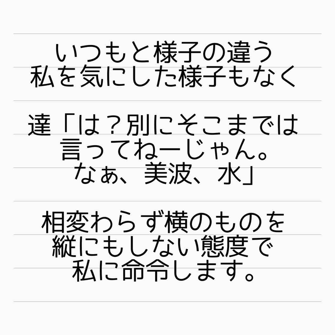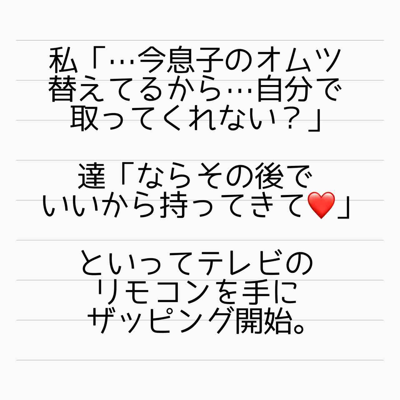結婚相手は地雷男 29 2022年01月29日 前回のお話はこちら↓「結婚相手は地雷男〜サレ妻美波の逆転人生〜 28」達哉は記憶喪失になったそうな。。。ってんなわけあるかー! ↓これまでのお話「結婚相手は地雷男〜サレ妻美波の逆転人生!〜」起1・2・3・4・5・6・7・8・9・10・11・12・13・14・15・16・17・18・19・20・2122・23・24・25・26・27・28・29・30管理人あいかのサレ妻ストーリーはこちらから(完結済)【海外赴任中の夫が現地女性と重婚していた話】 サレ妻しょう子さんのストーリーはこちらから(完結済)【産後10日でホームレスになった話】 サレ妻かおりさんのストーリーはこちらから(完結済)【セレブ妻かおりが全てを失いかけた話】 サレ妻美紀さんのストーリーはこちらから(完結済)【ママ友はフレネミー、そして夫の不倫相手】 サレ妻めぐみさんのストーリーはこちらから(完結済)【毒妹戦記〜夫の不倫相手は妹でした〜】 ↑LINEで更新通知が受け取れます。↑Twitter開設しました! 「結婚相手は地雷男〜サレ妻美波の逆転人生!〜」カテゴリの最新記事 タグ :#サレ妻,サレ妻あいか,毒家族,実話,浮気,不倫,離婚,毒親 < 前の記事次の記事 > コメント コメント一覧 (16) 1. キリカリ 2022年01月29日 13:18 一瞬、見れなかったですが、見れて良かった。 は?じゃないよ!なぜそんな態度で居られるんだろ。 0 サレ妻@あいか がしました 9. サレ妻あいか 2022年01月30日 04:19 >>1 コメントありがとうございます☺️ エラーでした💦すみません💦 0 サレ妻@あいか がしました 2. みき 2022年01月29日 14:06 奥さんは息子くんの世話をしてるの見てわかるよね💢 二日酔いは病気じゃないからね、そのくらい自分でやりな。 0 サレ妻@あいか がしました 10. サレ妻あいか 2022年01月30日 04:19 >>2 コメントありがとうございます☺️ そうなんですよ!どうしてそう、自分が優先されると思ってるんだか👊 0 サレ妻@あいか がしました 3. T 2022年01月29日 14:10 そこまで言ってるんだよ。 そこまで言ってねーじゃなく、言わずに自分で用意するんだよ。 むしろ持ってこい! 0 サレ妻@あいか がしました 11. サレ妻あいか 2022年01月30日 04:20 >>3 コメントありがとうございます☺️ むしろお前がおむつも替えろ!と思いますよね。。。 0 サレ妻@あいか がしました 4. 女の子ママ 2022年01月29日 15:05 自分の事は自分でやろうね 小学生でも自分で水持ってくる事出来ますよ みなみさんは息子さんのお世話をしていて大変なんだからそれくらいわからないのかな? 0 サレ妻@あいか がしました 12. サレ妻あいか 2022年01月30日 04:20 >>4 コメントありがとうございます☺️ 見えないんですかね、何してるか😅 0 サレ妻@あいか がしました 5. カフェラテ 2022年01月29日 15:13 この旦那は無理だ😓 子どもも今は小さいからわからないけど、こんな態度が当たり前に思って育ったら…😅 奥さんは奴隷。自分は女遊びしても、借金しても許されるってヒシヒシと感じる💩😜😜 0 サレ妻@あいか がしました 13. サレ妻あいか 2022年01月30日 04:20 >>5 コメントありがとうございます☺️ そうなんですよ! 子供は親を見ますからね。。。 0 サレ妻@あいか がしました 6. ばばあ 2022年01月29日 16:51 反対反対、横のものを縦じゃないよ。 縦のものを横にもしない、です。 細かいことごめんなさい。 0 サレ妻@あいか がしました 14. サレ妻あいか 2022年01月30日 04:22 >>6 コメントありがとうございます☺️ すみません😅言葉としてはご指摘通りです!ありがとうございます。 今回は横(寝そべっている様子)と縦(動く様子)をかけてそう表記しました💦 0 サレ妻@あいか がしました 16. あいかさん 2022年01月31日 20:58 >>14 この慣用句、使い方はどちらでもいいそうですよ〜😊だからあいかさんは間違っていないし、謝っていただかなくて大丈夫です🙆♀️✨いつも更新楽しみにしています🙏 0 サレ妻@あいか がしました 7. ひろみ 2022年01月29日 17:19 このムナ💩💩ダンナ、自分のしたことわかってないね まずは謝罪と説明が先だろ? 社会人としての常識だよ 0 サレ妻@あいか がしました 15. サレ妻あいか 2022年01月30日 04:22 >>7 コメントありがとうございます☺️ わかってませんよね。。。 もうなんか、舐めまくってるなと。 0 サレ妻@あいか がしました 8. ひろみ 2022年01月29日 17:21 このムナ💩ダンナ、自分のしたことわかってる? まずは謝罪と説明が先!社会人として常識だよ。 0 サレ妻@あいか がしました コメントフォーム 名前 コメント 記事の評価 リセット リセット 顔 星 情報を記憶 コメントを投稿する