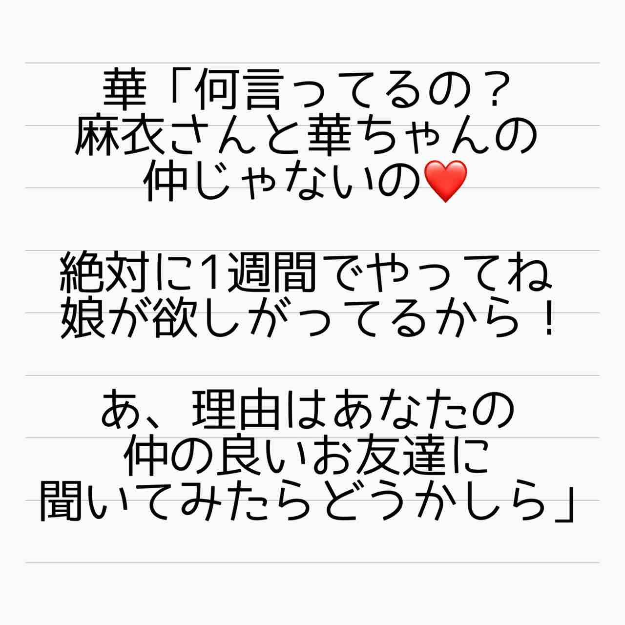 まあ、華子はきっとシタ妻なんだろうから麻衣さんのお友達から慰謝料請求はされるだろうけどね。