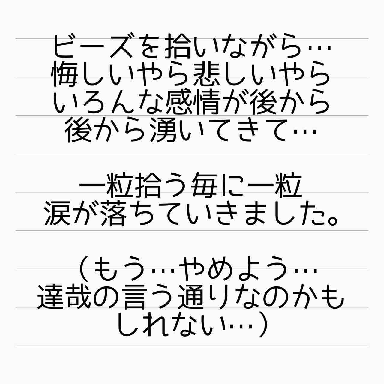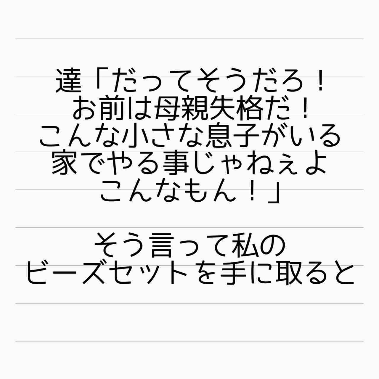 「お前の道楽が金になるとか(笑)まぁやってみれば(笑)」(私にはこう見えている)とか言ってみたら思いのほか美波さんのビーズ細工は好評でどんどん人に評価されていって…奥さんが他の人にも評価されるなんて嬉しいことなはずなのに母親失格とは(笑)(笑)