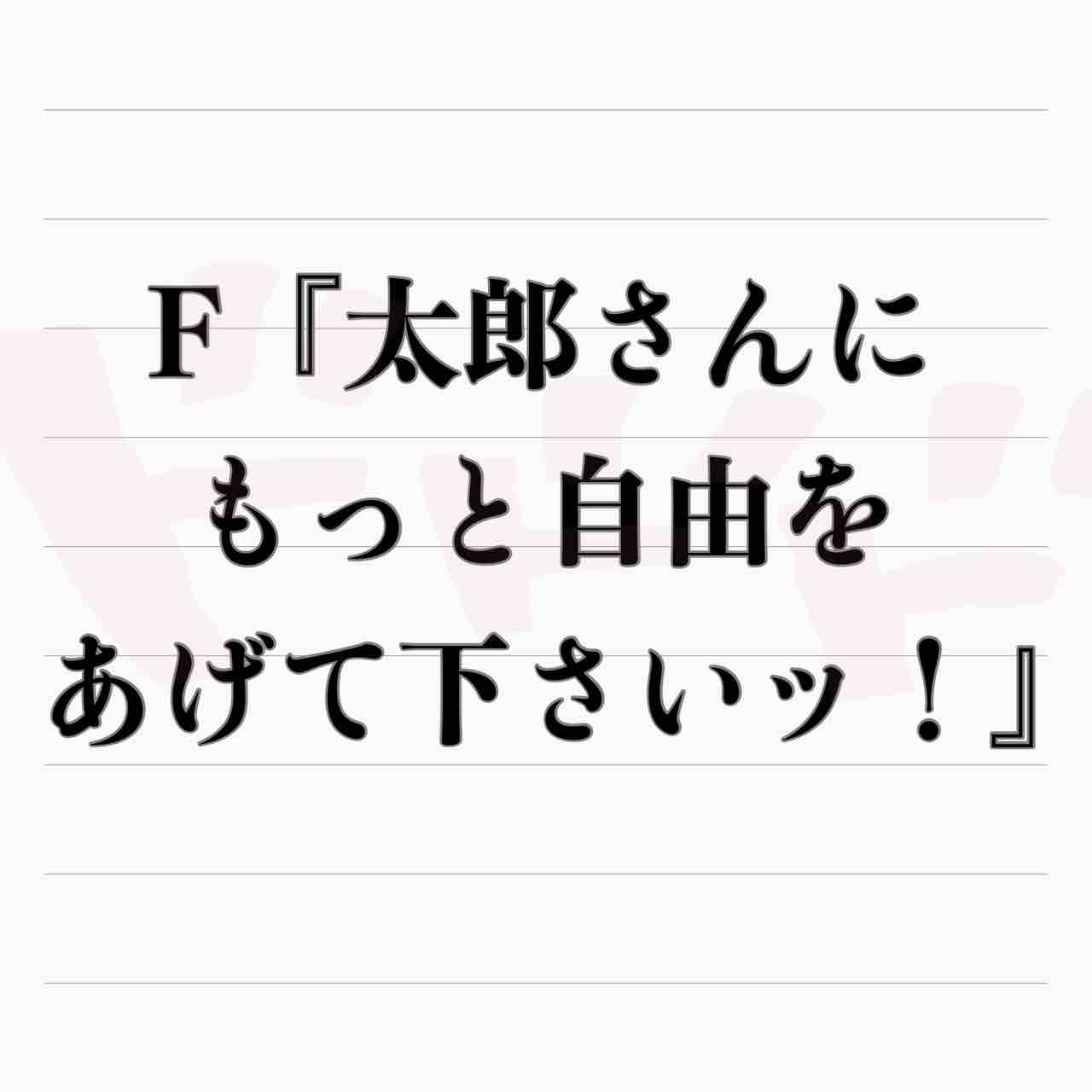 奥さんは太郎さんを縛り付けて、(主に私との)自由時間を奪うなんて最低よ!!