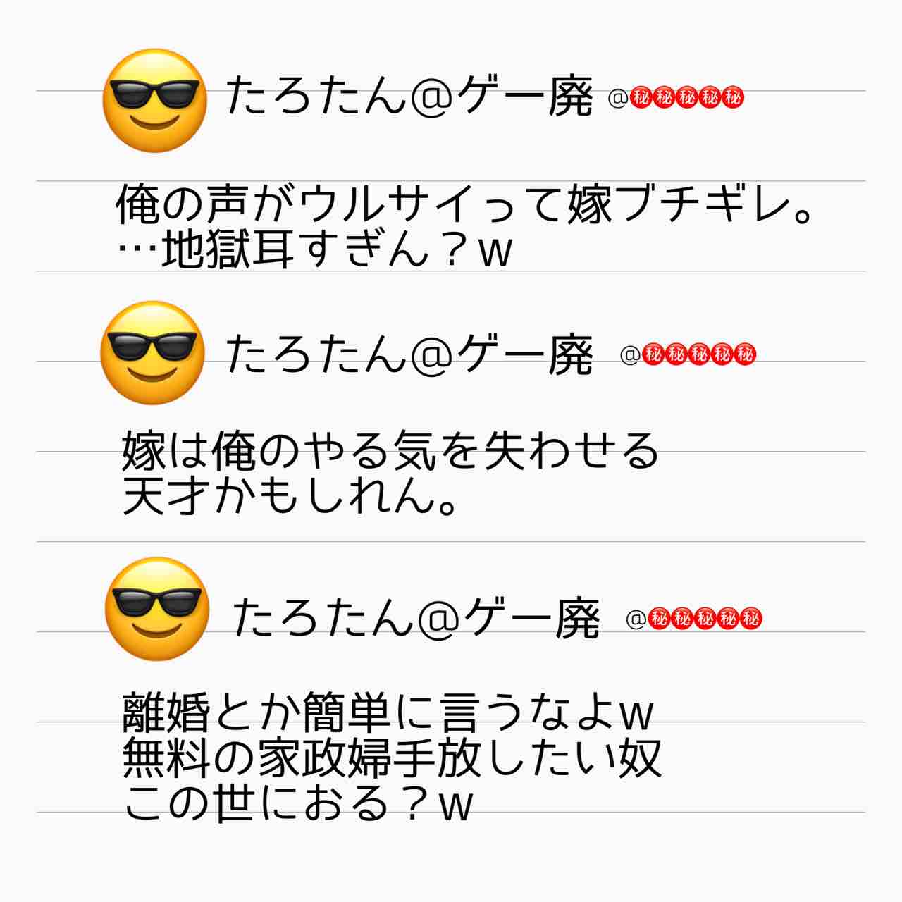 いあ、〇したくなるね。なんだと思ってんだ、嫁のことを。