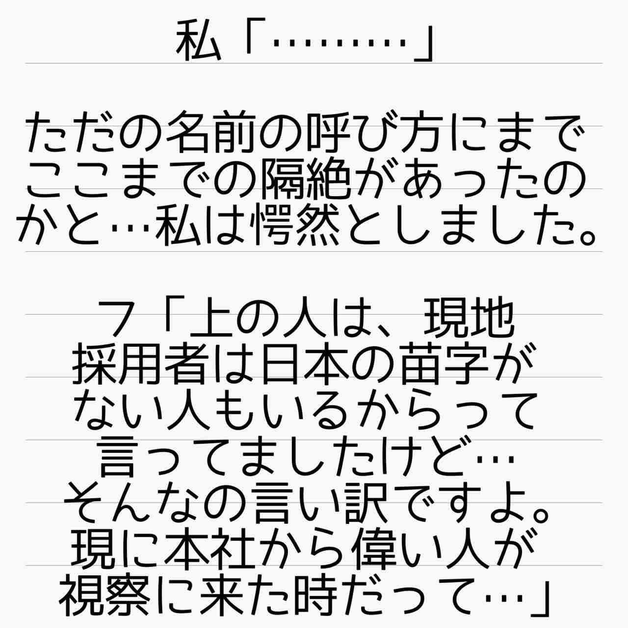 …さて、現地採用者を小間使い扱いされることに不満があるならそれはフミエさんのトップに掛け合うべきだと思うんですよね。