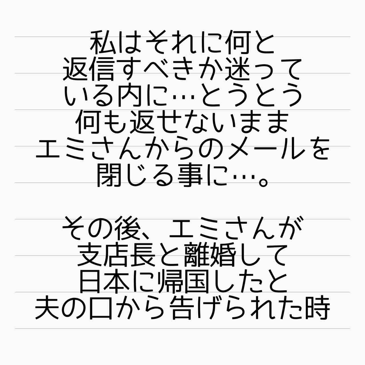 かねてからフミエ×支店長が出来てたなら「エミを敵対視していたこと」「駐在妻のコミュニティーにフミエが謎に入り込んでたこと」「妊娠した途端離婚したこと」全てに辻褄が合ってしまう…。リックは永住権の為だけに利用されたのか?果たして…🧐!!(ワクワクすぎる~♪)