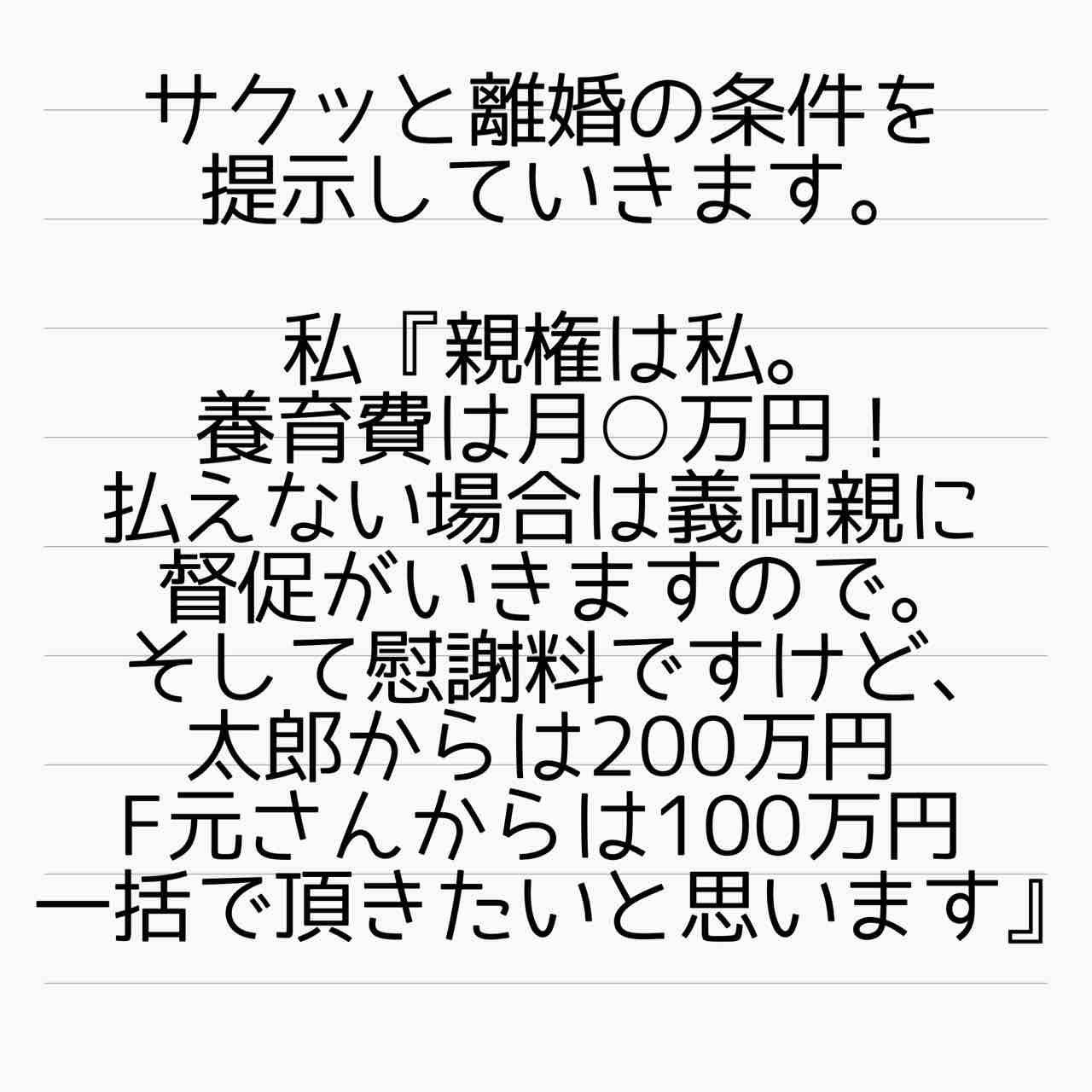 F元は意外と、「100万くらいなら払えますから、離婚してください」って言いそうな気がする。