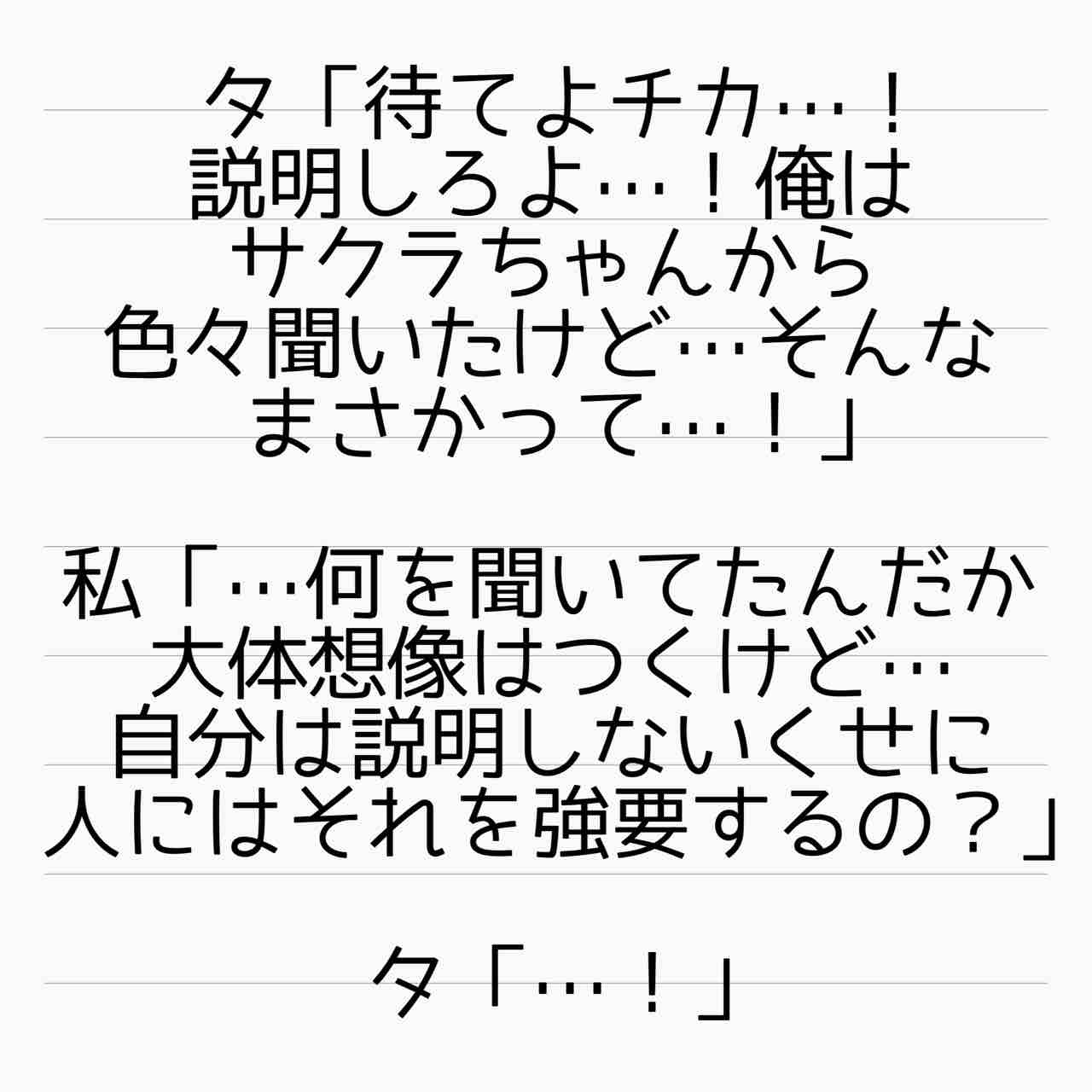 タダシもサクラの戯言信じてチカさんの話も聞こうとしなかったくせに。