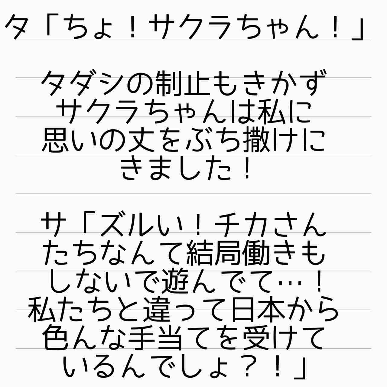 チカさん、はっきりきっちりサクラとタダシやっちゃって💢