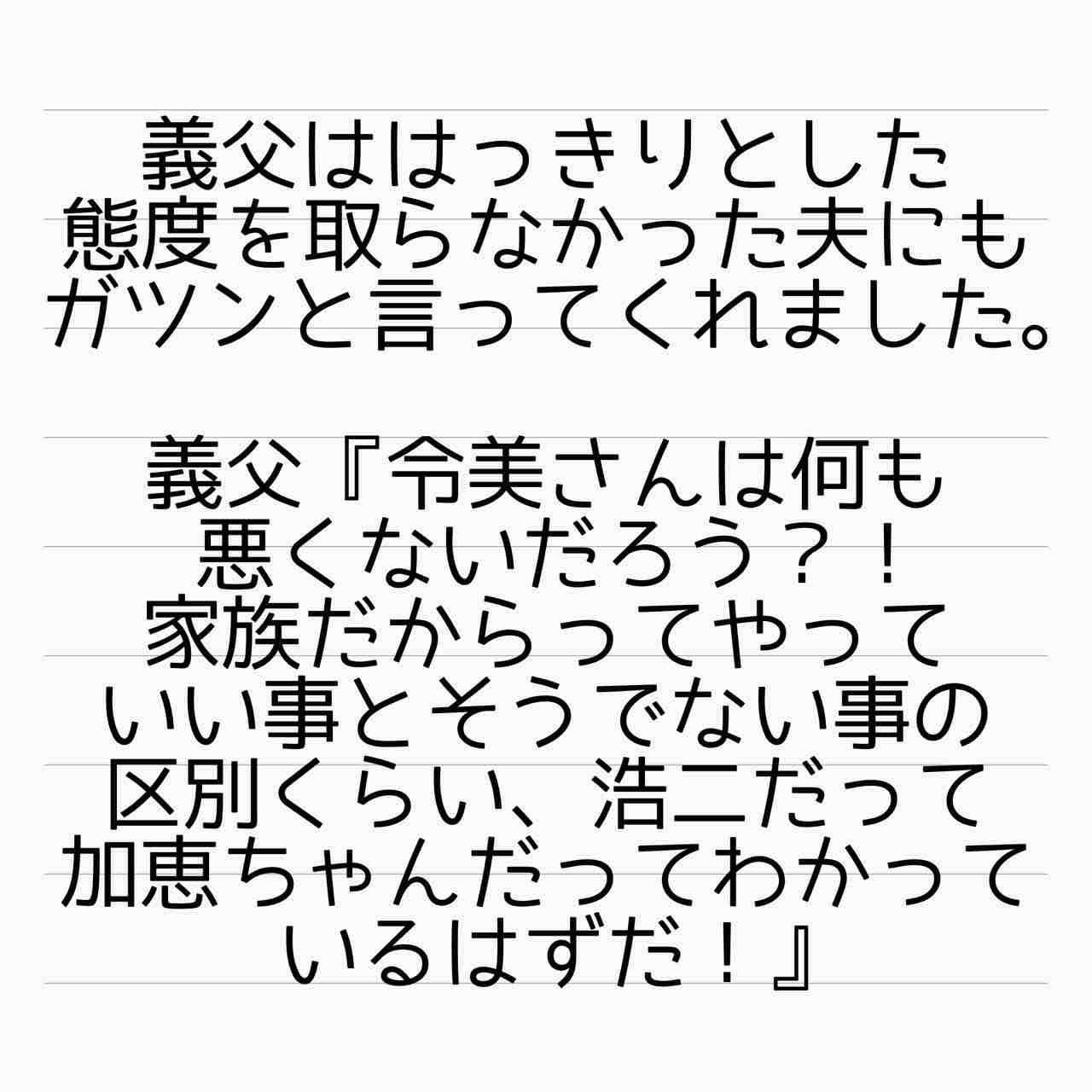 しかし賢一クン、令美さんがどんなに泣いても宥めるしかしなかったのにお義父さんに叱られて謝るんだ。叱られたから謝るんだ…