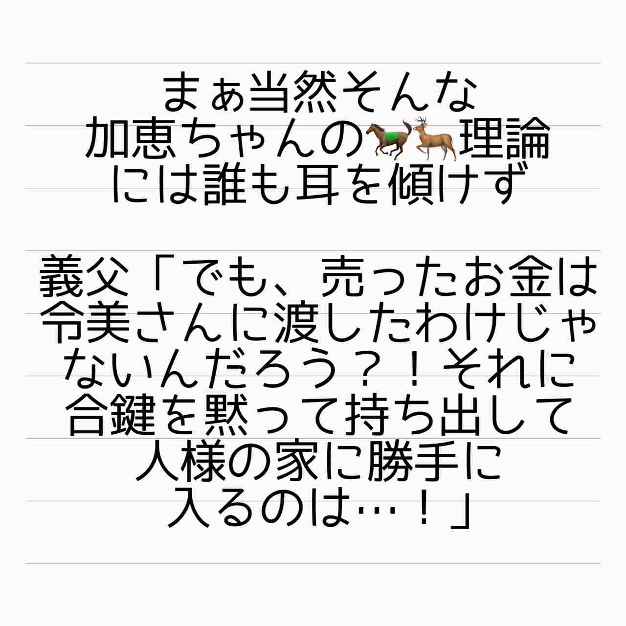 合鍵だって令美さん夫婦が渡したものではないし、加恵のした事は泥棒と一緒です。