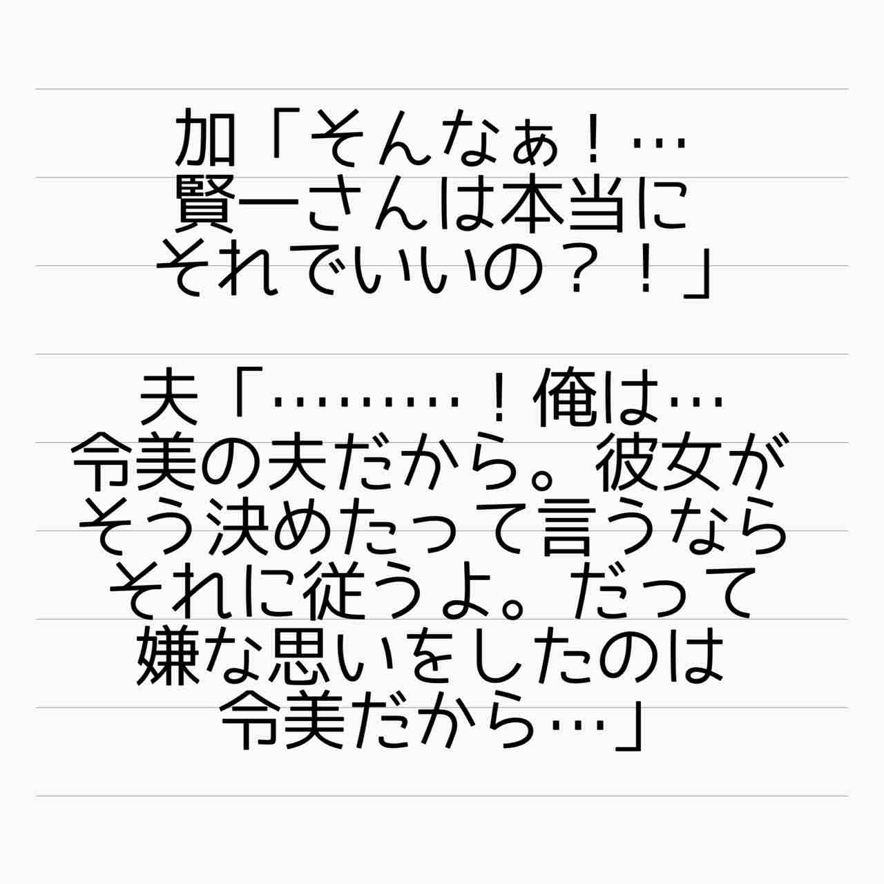 釘をキツく刺しておくべきは加恵と次男?であって、令美さんに負担をかけるのは都合良すぎだと思う。
