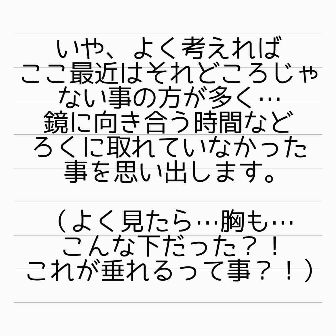経産婦なら当たり前の変化もあるでしょうけど、食生活や基礎化粧品にも不自由してたせいかお肌も酷いようですね。