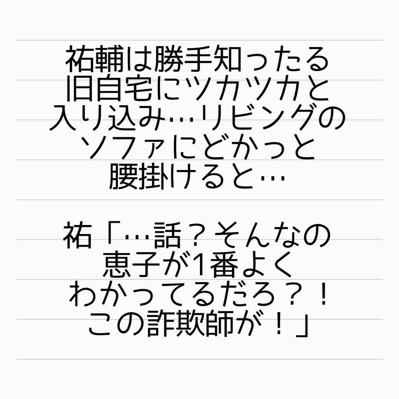 散々クソ発言を恵子さんに吐いてるけど、あと少しで祐輔が絶望するのか、楽しみだわ。