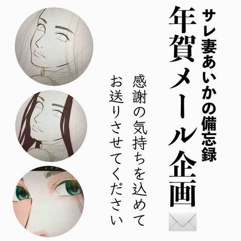 カテゴリ : 企画 【年賀メール企画!】 2021年度は『サレ妻あいかの備忘録』をご愛読頂きまして誠にありがとうございます!つきましては感謝を込めて、希望者の方にお年賀メールを送らせていただきたいと思います。 【もらってもいいよ!という方は、、、】ブログトップページ、お問合せ、より、必ずメールアドレ ... 続きを読む
