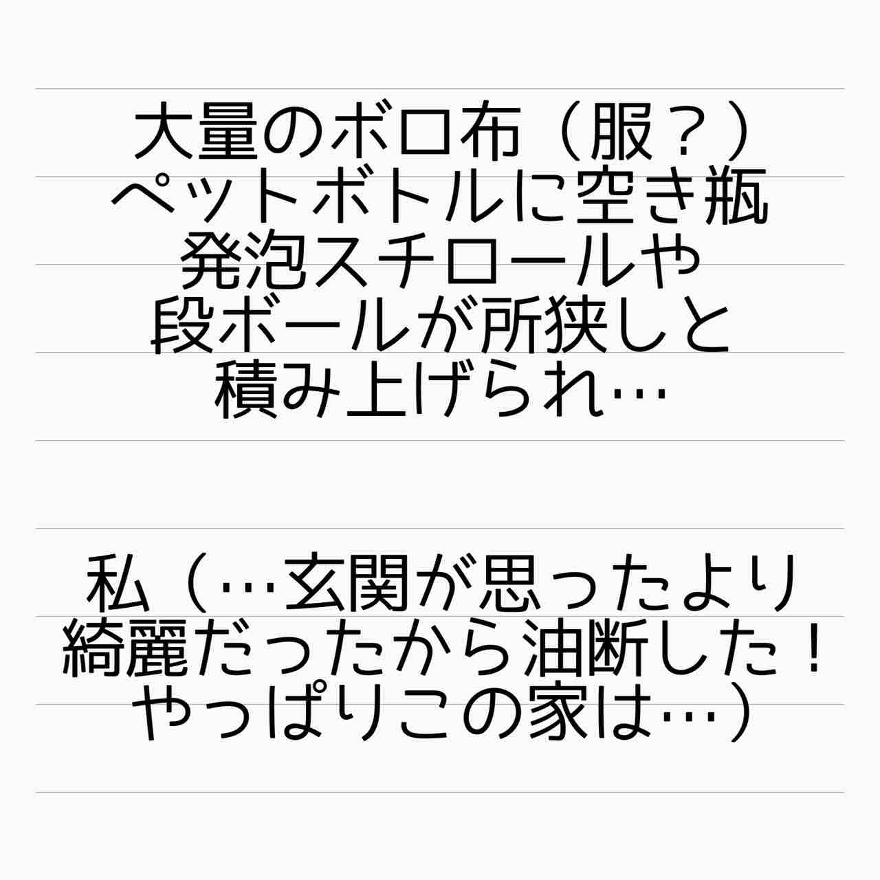 昔寮に住んでいた時、寮母さんに頼まれて他の部屋に入ったことあるけど、ゴミ部屋?汚部屋?初めて見た時、床が見えなくて荷物が折り重なっていました。その部屋の持ち主が退寮してあとに入った子は、やたらとGが出ると言ってましたが、このおうちもすごいでしょうねえ。害虫の巣になってそう。