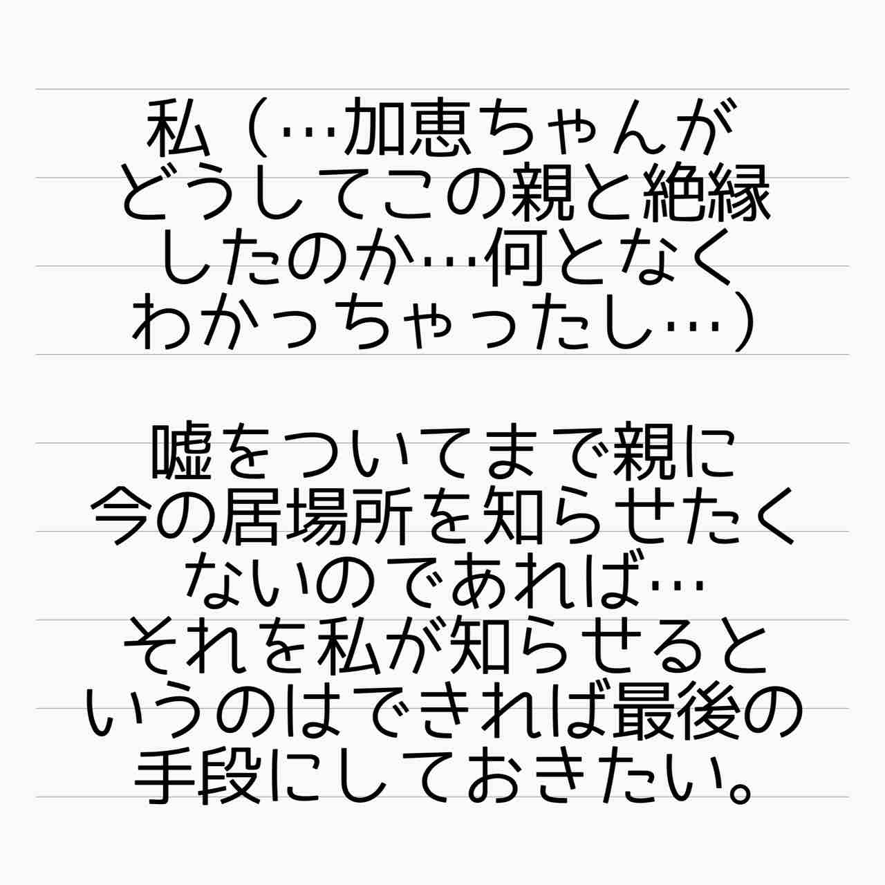この親に加恵の居所教えるのは最終手段ですね。