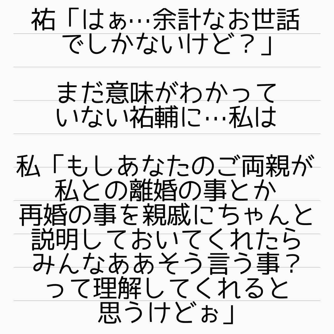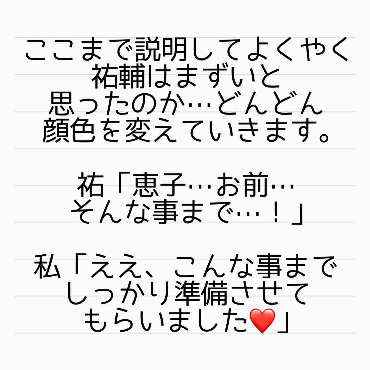 まぁ、お心遣いの裏には、恵子を裏切って祐輔は計画的に離婚をしようとした非道な人間だったと、しかも、祐輔の両親も祐輔と手を組んでたって、恵子さんからのちょっと規模のデカイ復讐ですよね。