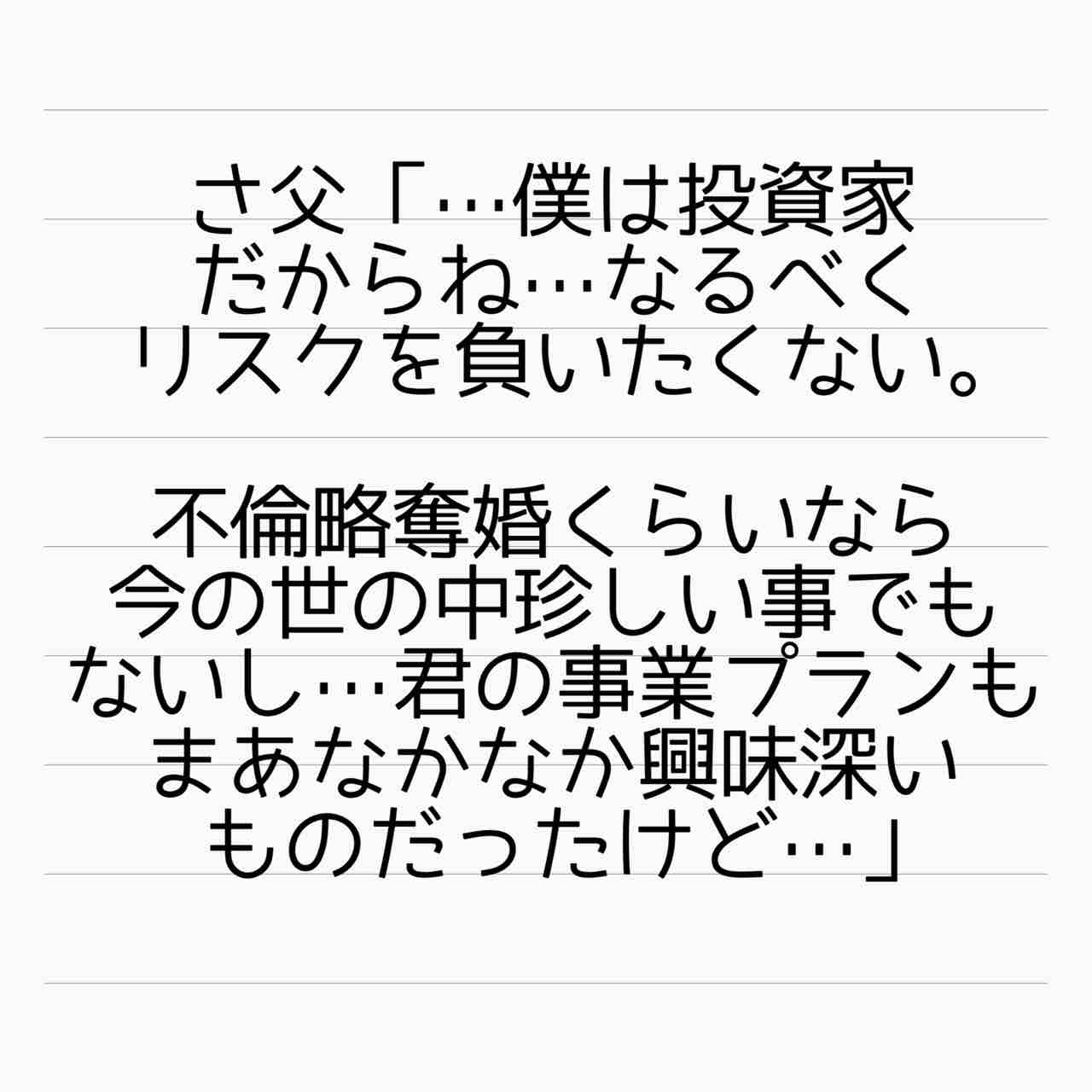 不倫略奪したのはかわいいかわいい我が娘だし、孫もお腹にいるから許しちゃうけど、元々相手のオトコは家族と認めてはないのかなーという印象ですね。娘と孫に不自由させたくない故に投資しようとしていただけで、それこそ紙切れの1枚くらいの価値としてしか認識されてなかったのかも。