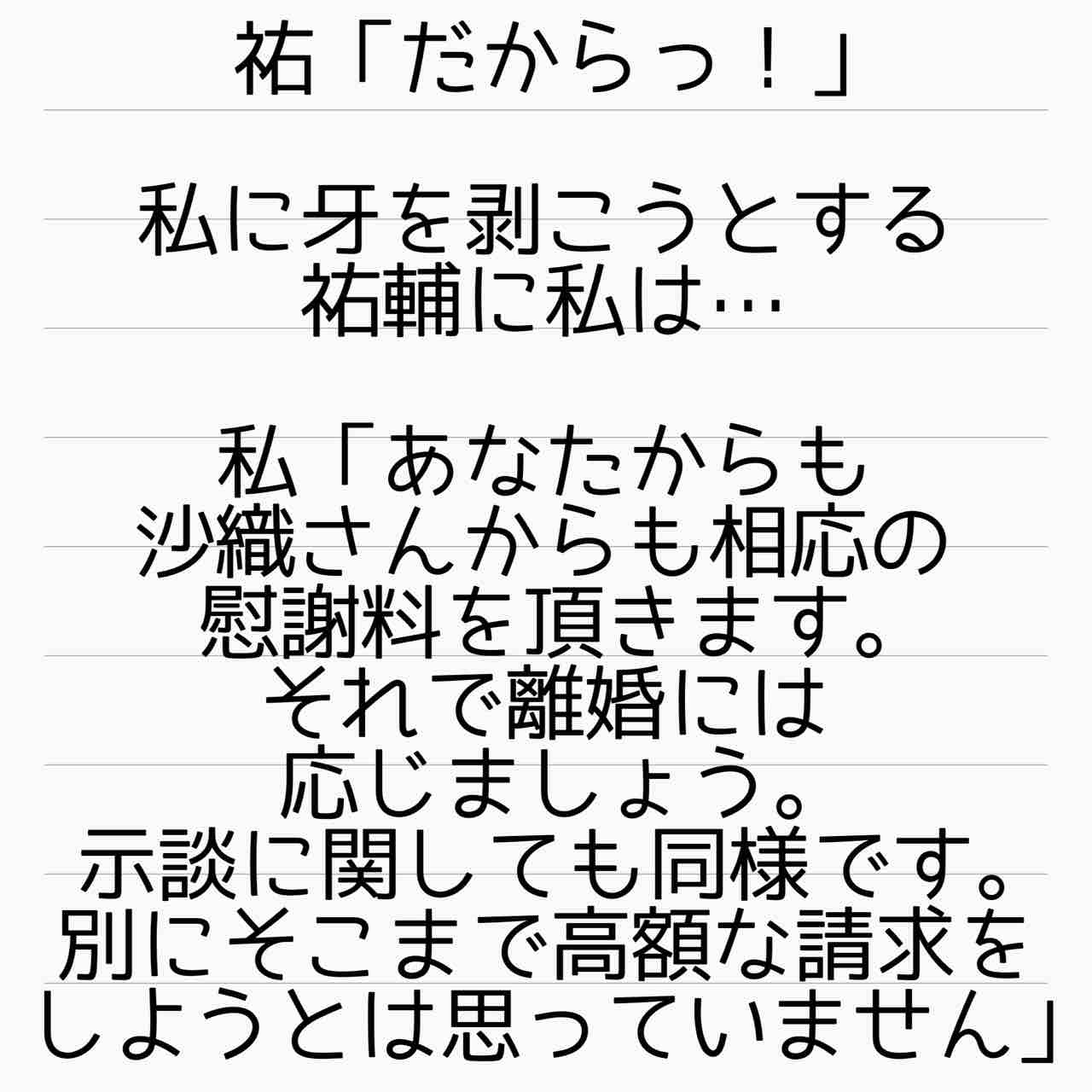 さおりんパパと、祐輔両親、どちらからも援助なく慰謝料を払えるのか見ものですね…