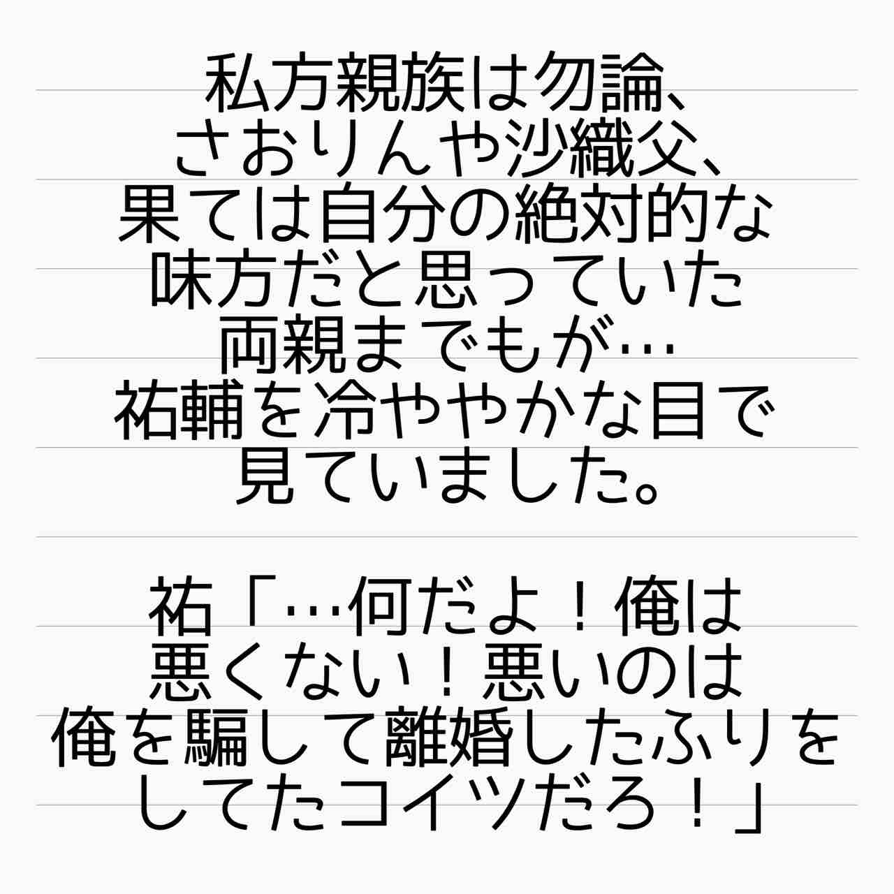 恵子さんの金で見栄張ってアウディ買って、その車でさおりん引っ掛けて今度はさおりんパパの金引き出す為にさおりん妊娠させた祐輔がそれ言えるのかー。