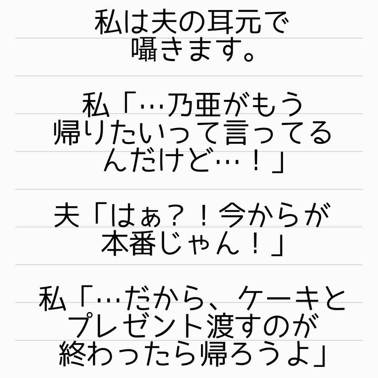 義父母の誕生日とかならまだしも、大人が好き勝手に飲んで騒いでるだけの近所の子の誕生日、小さい子連れなら早めにお暇するのも「常識」のうちと思うけど?