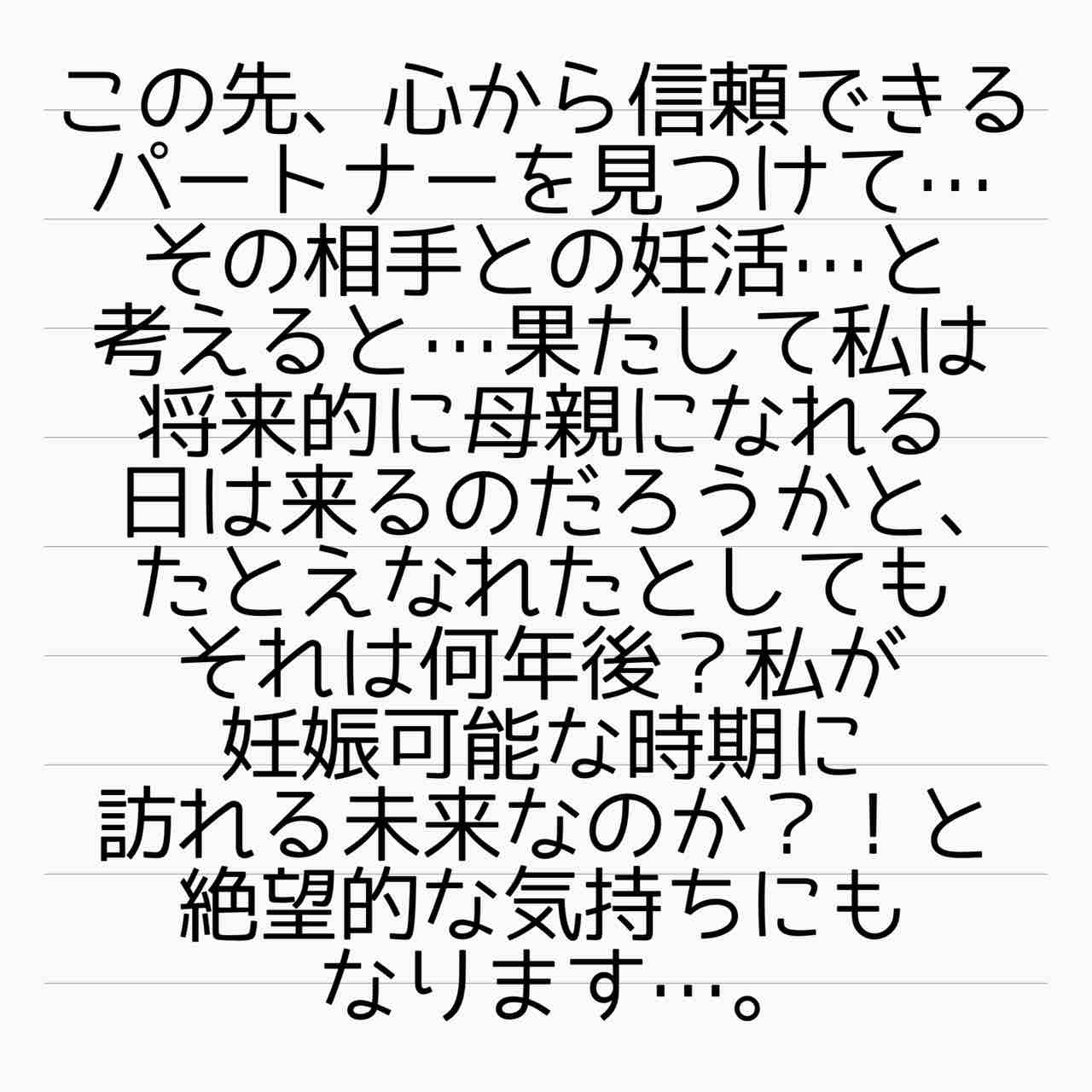 もし妊娠していたとしたら妊娠中に不倫されていたかもしれないとか、いろんな「かもしれない」があったかもしれない