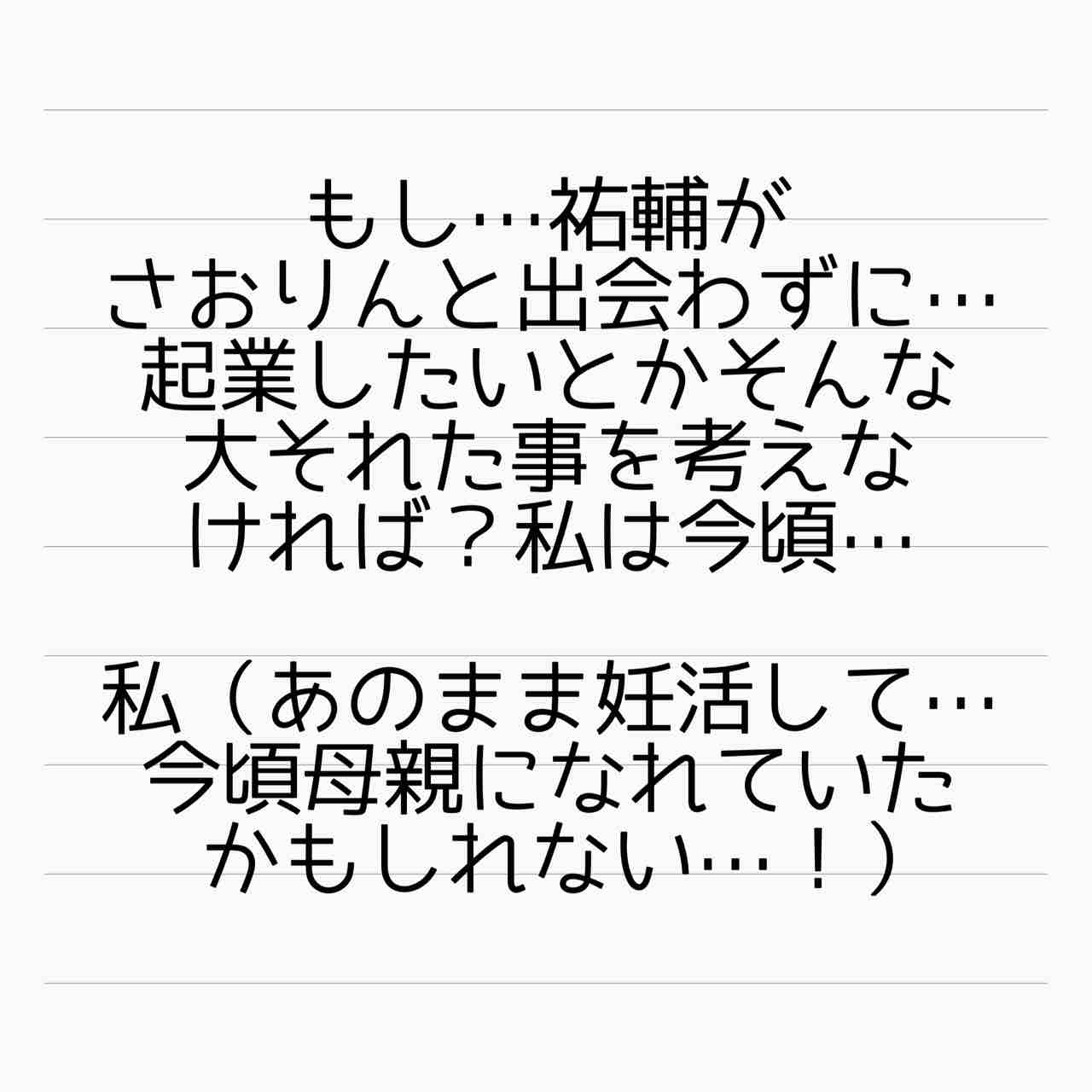 祐輔(親子)とさおりんがあのまま一緒になっていたとしても誰一人幸せにはなっていなかったばかりか、もっと悲惨な未来があったと思います。特にあの二人の子どもにとっては。