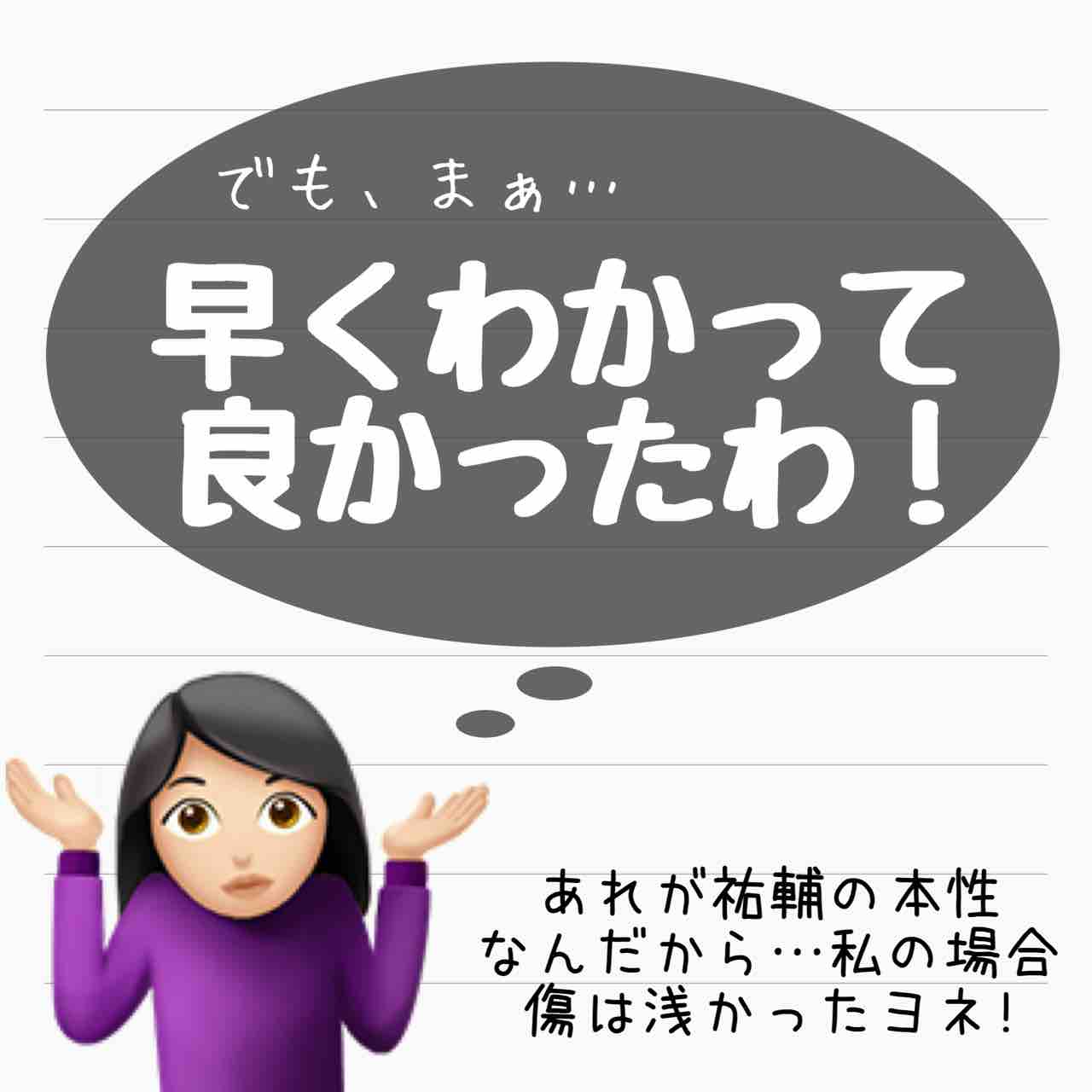祐輔みたいな男の本性が知れて良かった。