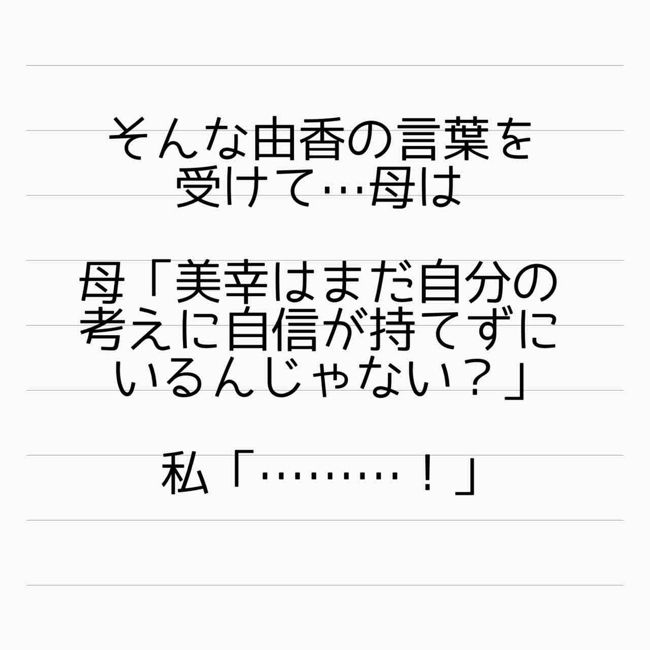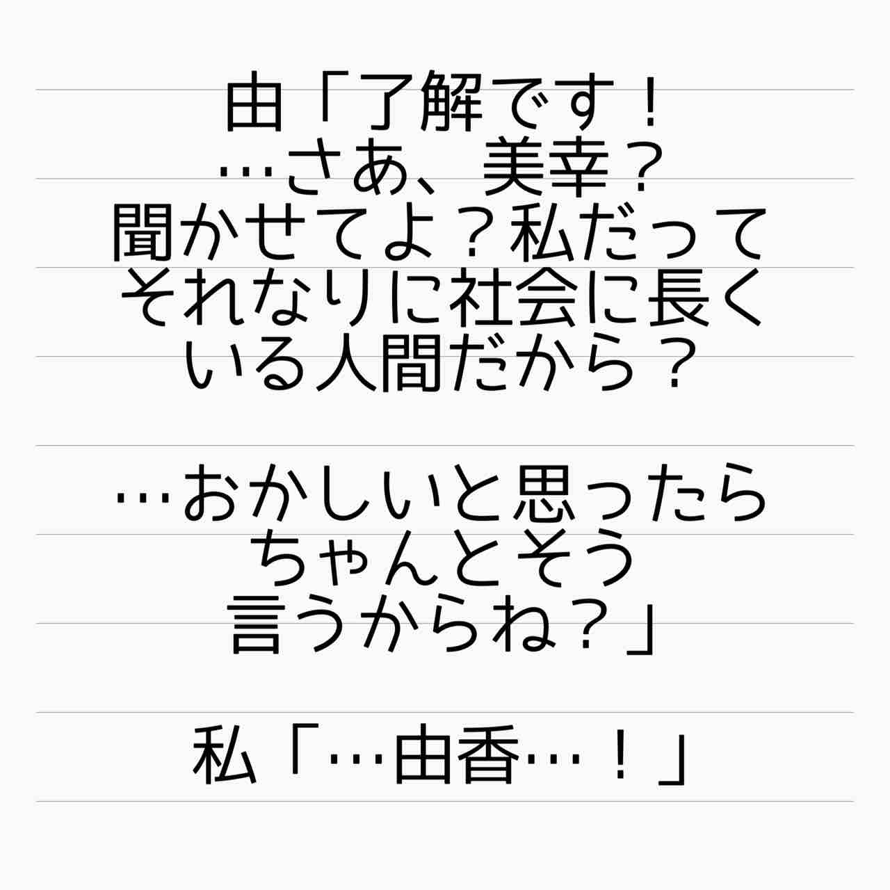 由香さんの公平な意見で自信を取り戻して、義実家と郁未と戦える力つけて