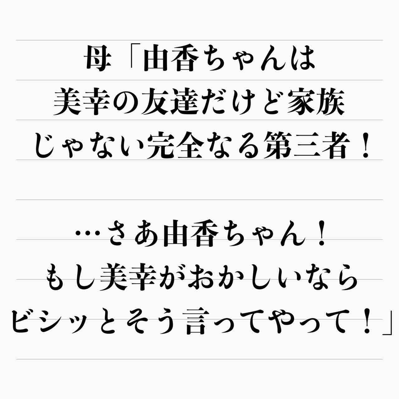 それならと、自分より娘と近い歳で仲がよくて、自分の意見を相手に傷つけずに言える友達が、ゆかさんだったから頼んだんだろうね。