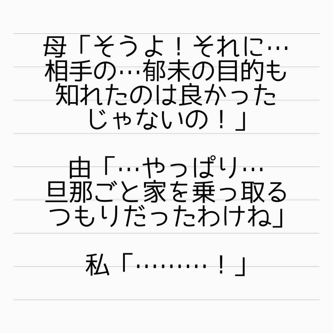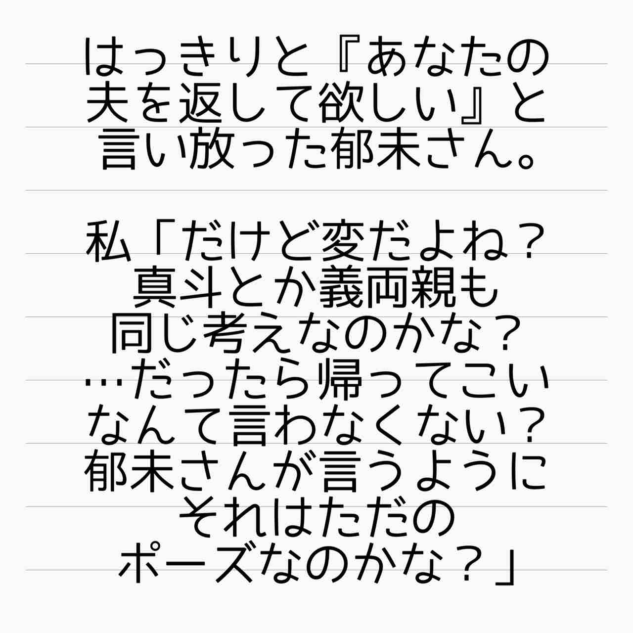 やっぱ、真斗と義両親の本音は今のところ不明だよね...
