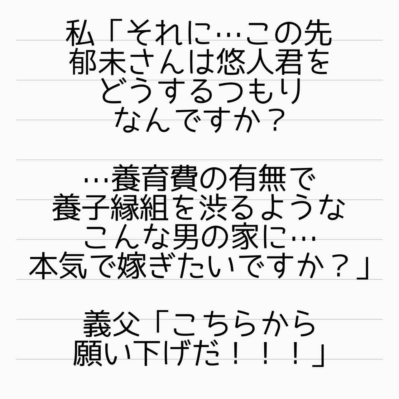🐒斗と再婚したら、お金はないのもさることながら、あの置物爺や婆さんに冷遇されるんだよ。今まで可愛がられてたのに、今日から汚物みるような扱いされるんだよ。