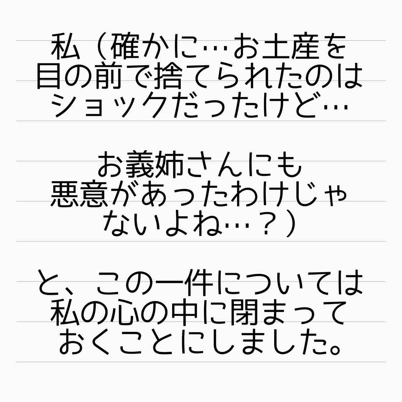 お土産捨てられたのも自分の配慮が足りなかったって思っちゃうよね。