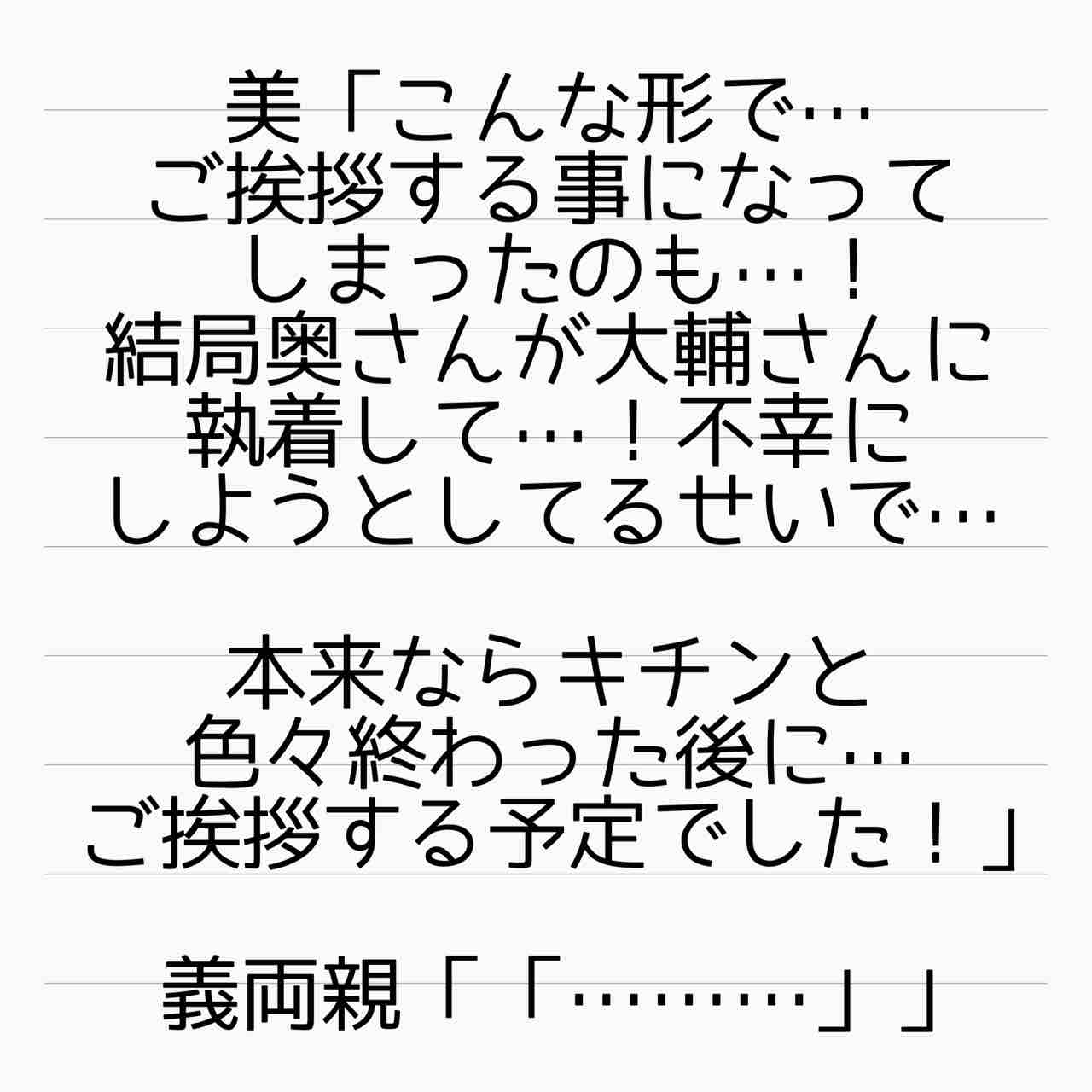義両親にとって優香さんはきちんとしたいいお嫁さんだもん、こんなポッと出の🍮女の言い分なんて信じないでしょうね