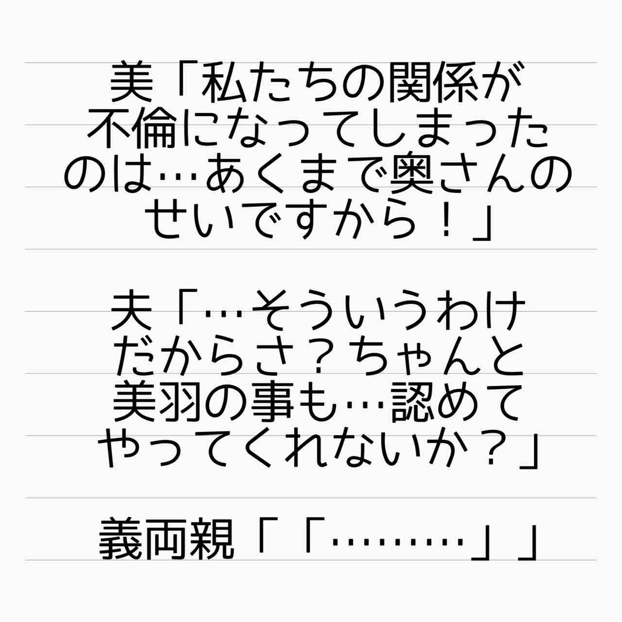 少なくともまともな倫理観持ってる人なら「不倫だけど本当に愛し合ってます!」はありえないと考えるし、優香さんは義両親にとりあえず気に入られてるからねー。