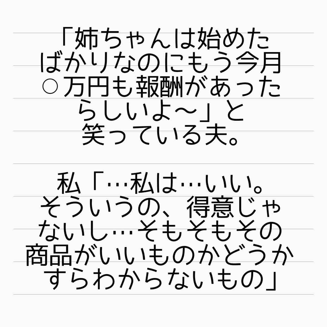 ユーザーとして納得した上でネットワークの商品を使うことと、副業にして販売するための組織を広げる活動をすることには大きな隔たりがありますよ。