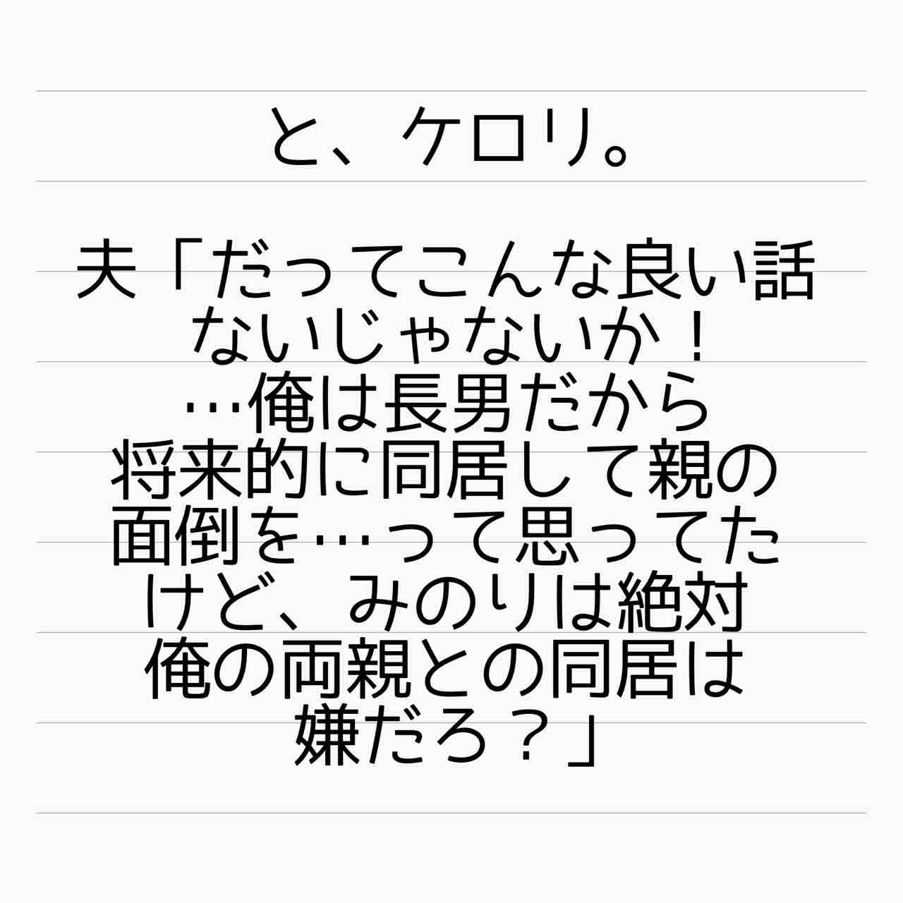 いや、長男である貴方はみて当たり前だけど、みのりさんは他人だからね??他人の親みる義理はないんだからな?