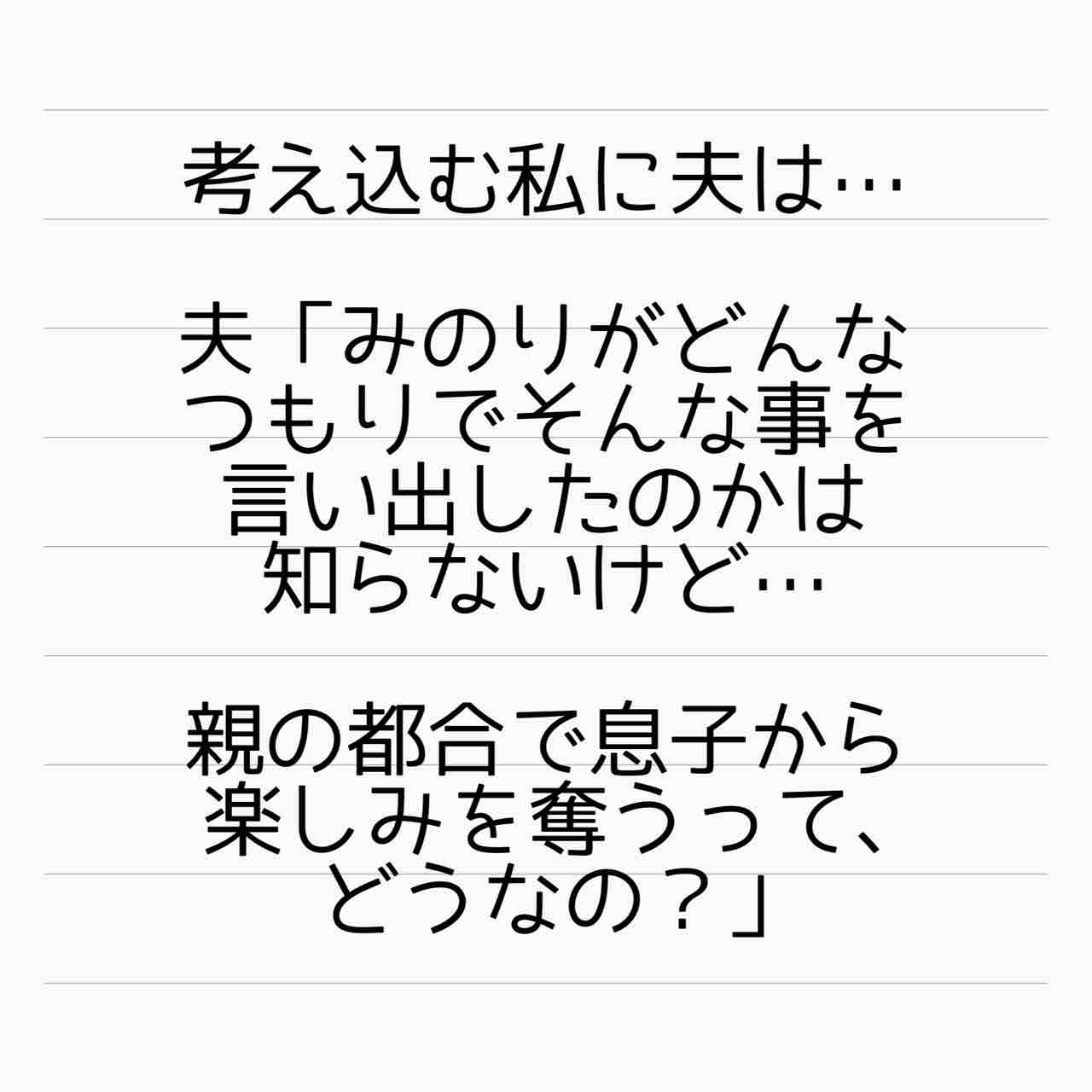 親の都合とか思っているなら、旦那説得しなよ…。