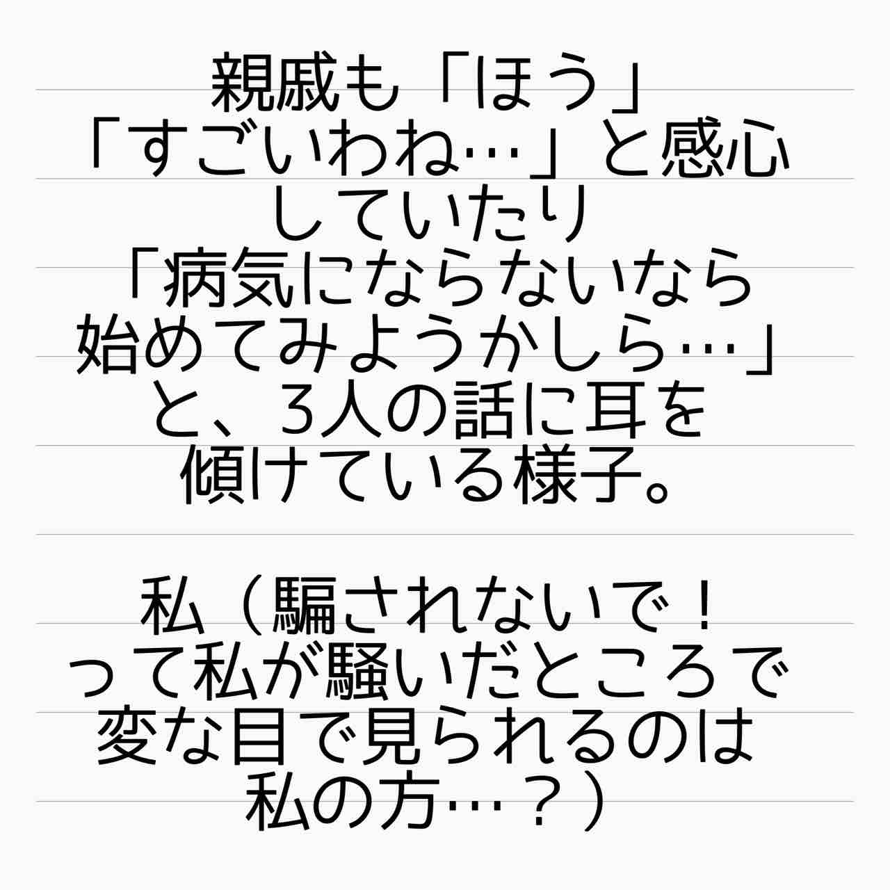 しかもああいった人たちは次から次からいろんな○チ探してきてすすめるんですよ。一つの会社で満足できないのは自分もいまいちなんじゃないの?っていいたくなる。その匂いがプンプンするわ😱
